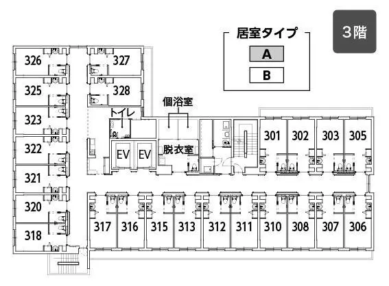 中浴室浴室は、バリアフリー対応です。個浴槽のほか、中浴槽(数人用)も設置。気の合うご入居者様とゆっくりお風呂が楽しめます。暖房設備もついており、急激な温度変化でお身体に影響を与える心配がありません。