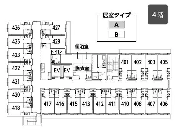 外観施設の建物は4階建ての鉄筋コンクリート造。施設内には駐車場もありご家族の訪問時にもご利用可能です。※土地・建物の権利形態:事業主体非所有