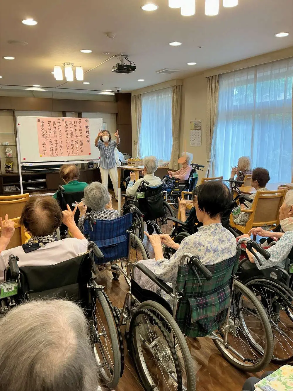 レクリエーション風景原則として毎日、レクリエーションを開催。運動系、脳トレなど、機能訓練や認知症予防を兼ねたものに力を入れております。その他にも、クリスマスや納涼会など、様々な季節のイベントもお楽しみいただけます。