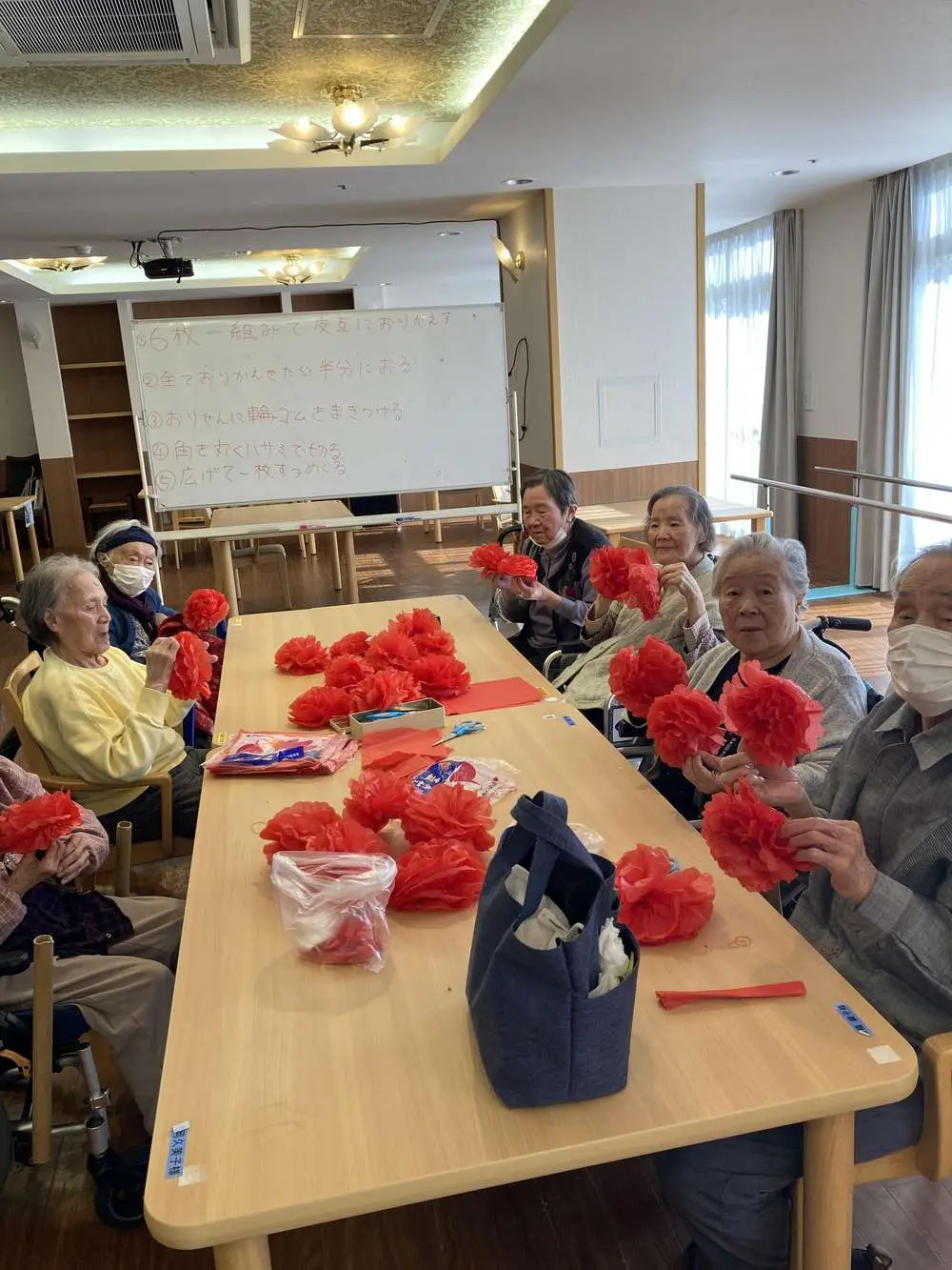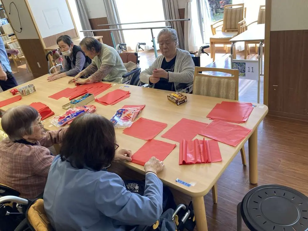 さっそく施設内に飾らせていただくと、ご入居者様からも