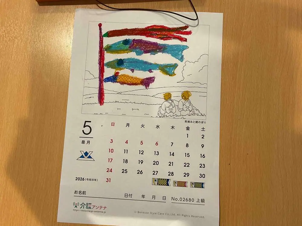 毎月カレンダーを作成しています。お好きな図案をお好きな色で塗りながら、楽しんで頂きます。