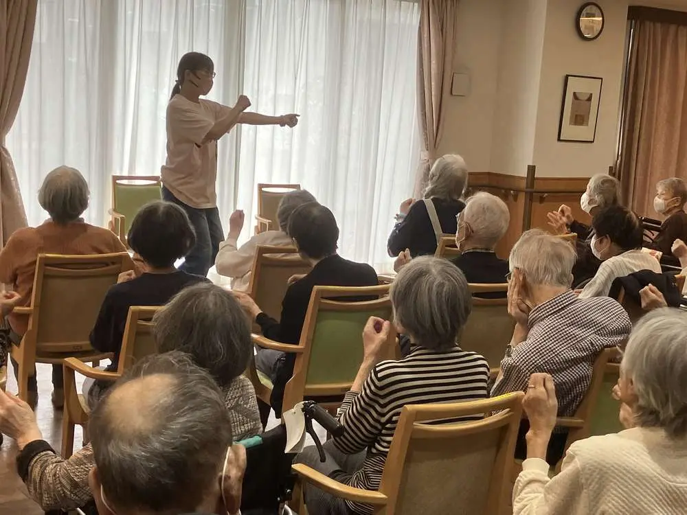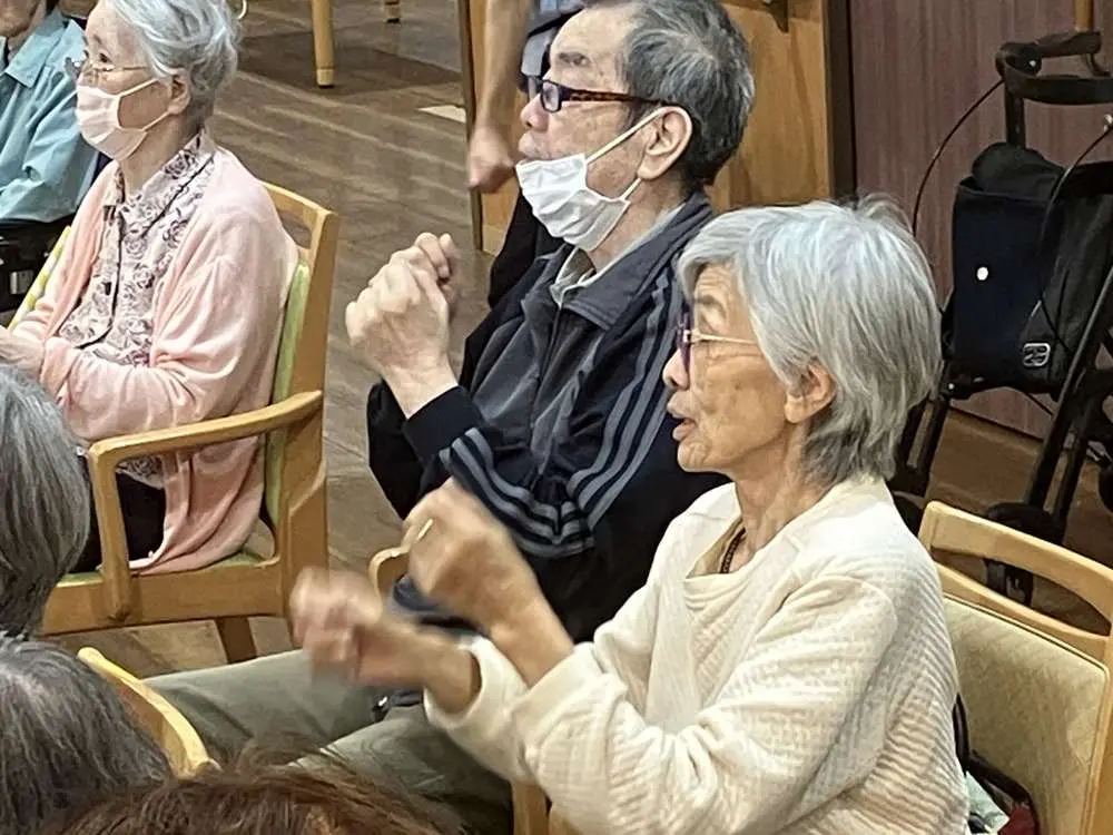 ご入居者様はまるでお孫さんを見るような優しいまなざしで聴き入り、思わず手拍子をする方も👏💓