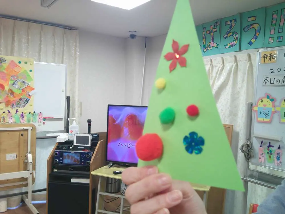 お誕生日会の後は、クリスマスの飾りをみなさまと協力してつくりました。