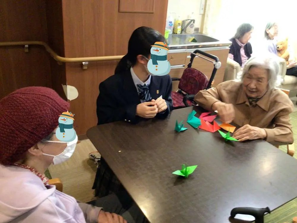 職業体験では、「坊主めくり」や「折り紙」を入居者様と一緒に行いました。