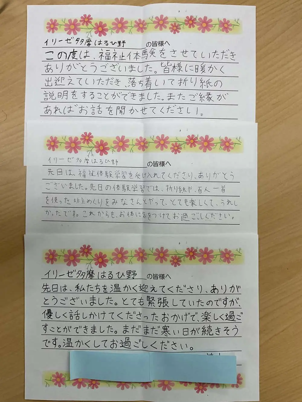 その時の生徒の皆さんから素敵なお礼のメッセージをいただいたので紹介致します。
