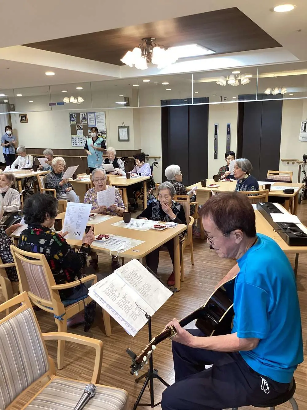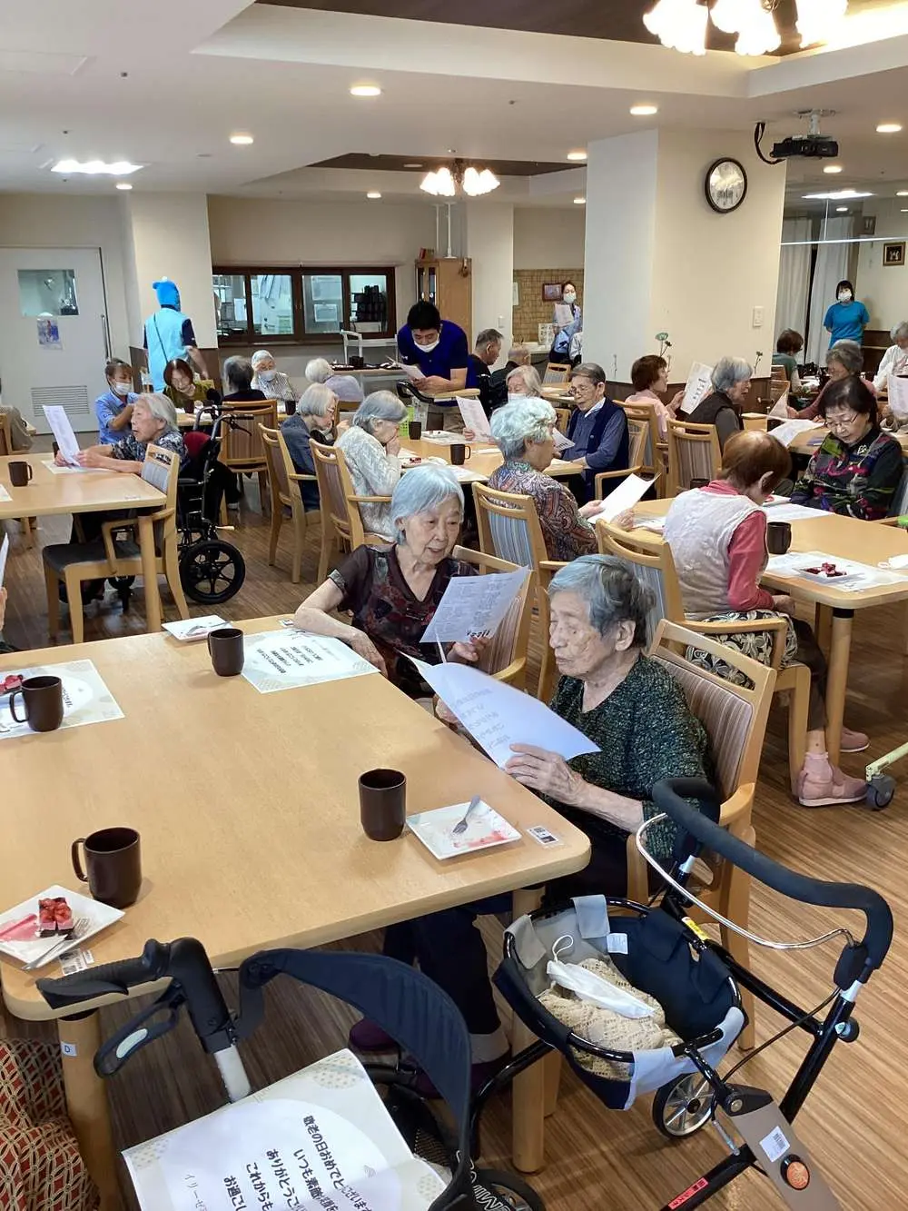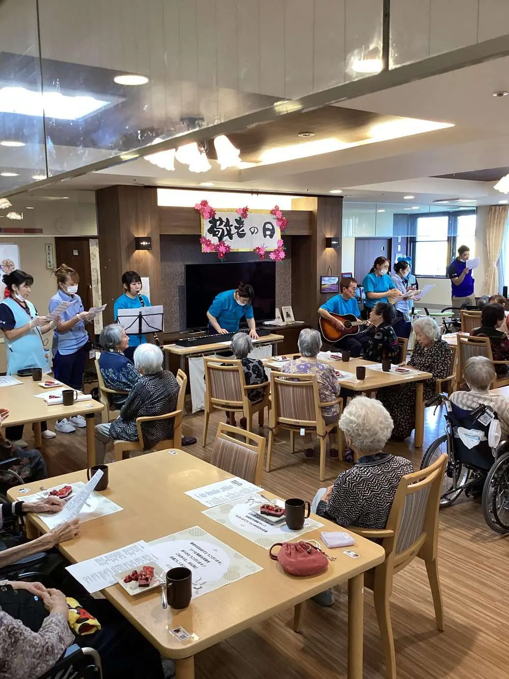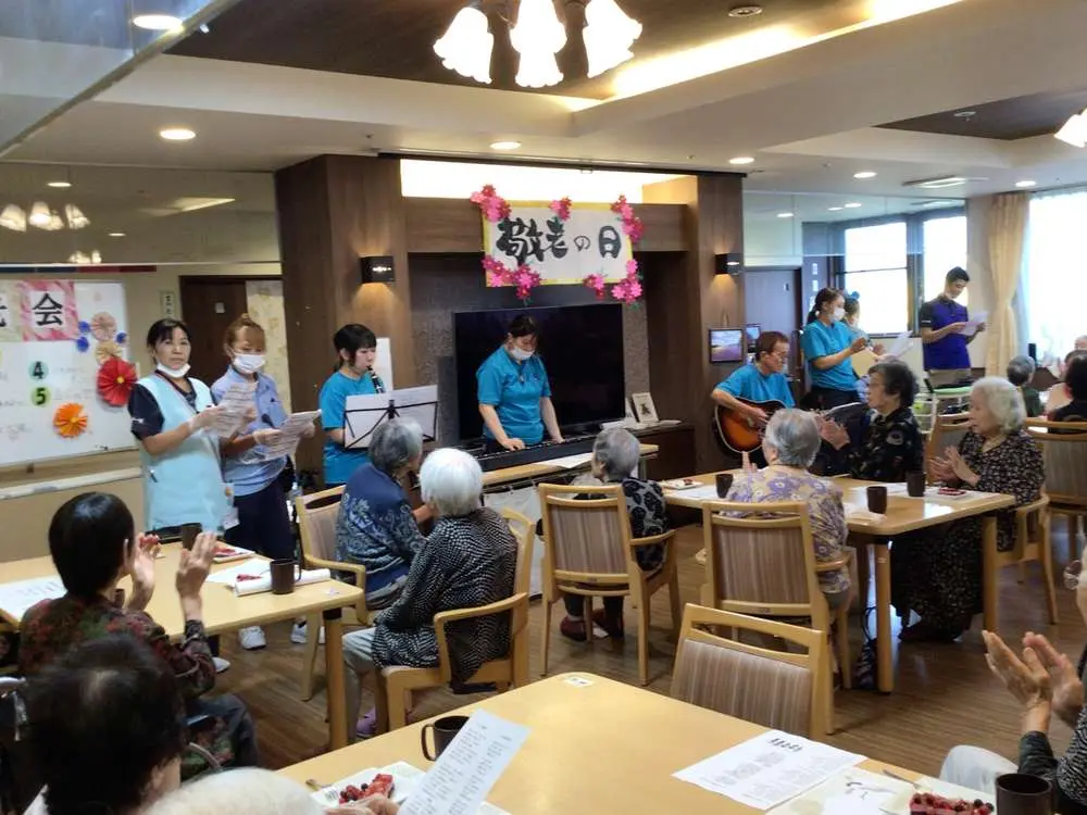 平岡公園です。😊😊!(^^)! 先日、”敬老の日のお祝い会”💖✨ 開催させて頂きました。 ベリー系のケーキを頂いたのちに、スタッフのギター演奏で、入居者様の合唱と、キーボード、特製の太鼓もどき?(😊)、クラリネットも参戦してのスタッフ合奏、歌のプレゼントがありました。 細やかですが気持ちは大・大・大盛りに込めさせていただきました💖🎵☺️ 少しでも楽しんで頂けましたなら嬉しいのですが・・・💕 今年、百寿を迎えられた方もいらっしゃいました。 皆様の慶事のお祝いに関わらせて頂けることに幸せを感じます。 皆様、これからも、お元気でお過ごしくださいませ。   平岡公園からでした。     ありがとうございました。✨🌸