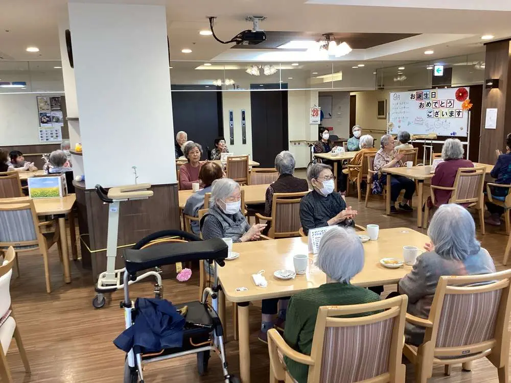 いかがお過ごしですか❓ 一雨ごとに冬来る、、、ですね😅 負けないで、楽しみたいものです。☺️ さて、過日 お誕生日会が実施されました。🎉🎂♥️ 皆さん良い笑顔でしたよ😊😊!(^^)! 健康でお過ごしになってください💕☺️🎁🎁 本日のお祝いケーキはマロンでした🌰🎂 今、施設内には、9月10月の行事のお写真が掲示されております。 よろしかったら見にいらして下さい。😊😊!(^^)! 以上 平岡公園からでした。 ありがとうございました。🌸🌸