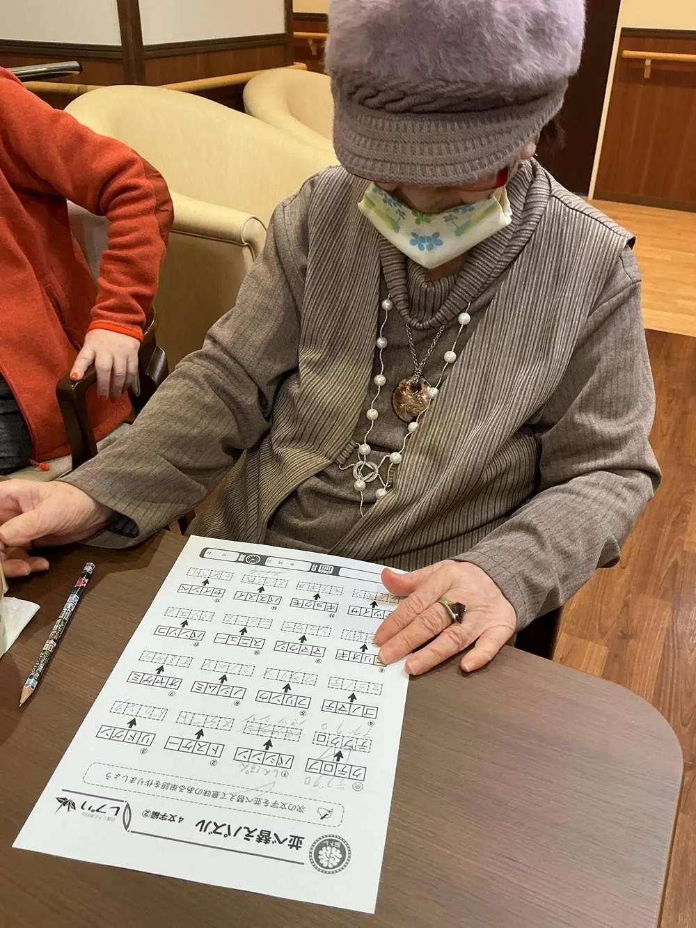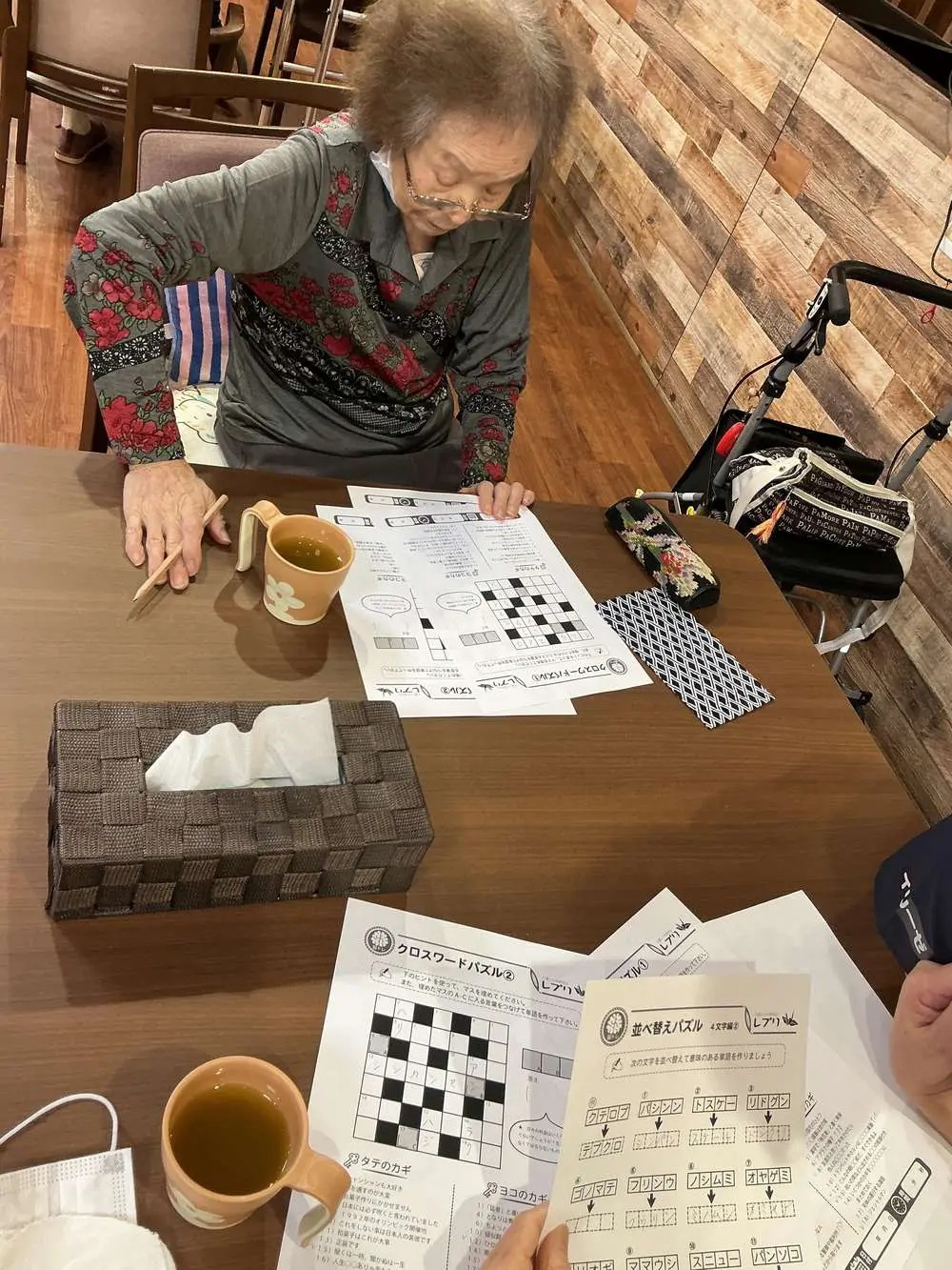 本日はレクレーションにてクロスパズルを行い