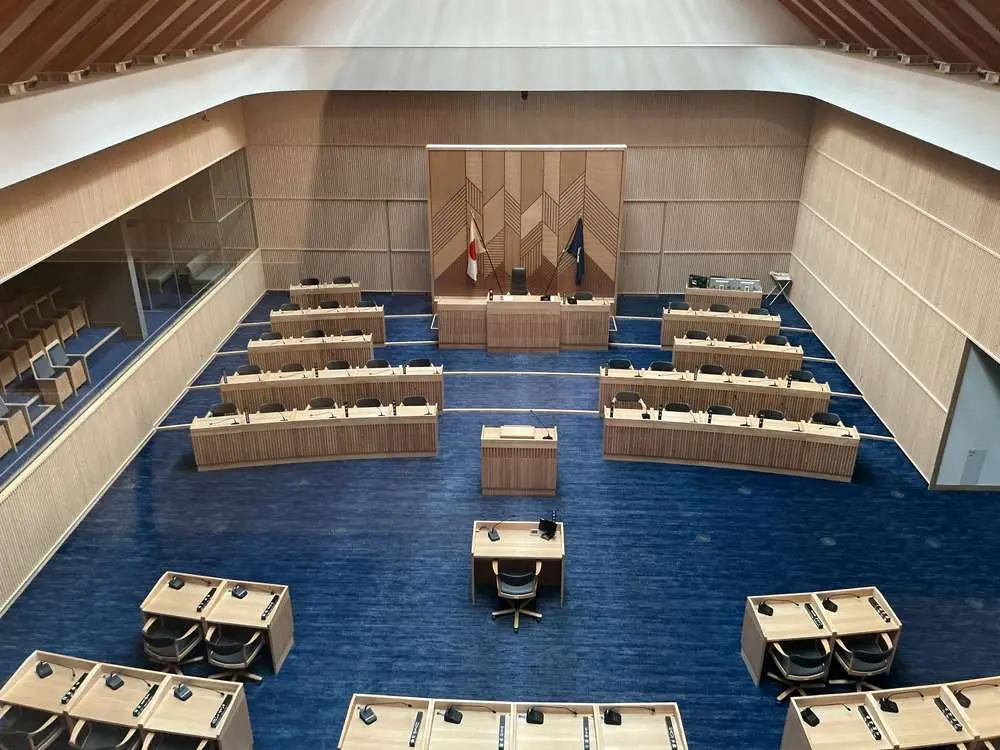 また9階のスペースから8階の議会室が見下ろせます(◎_◎;)