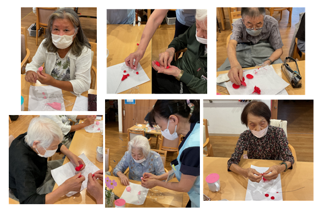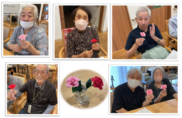今回の創作レクリエーションは【クレイフラワー】紙粘土でバラを作成しました。