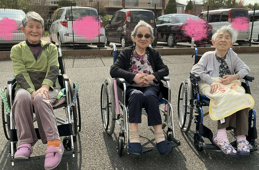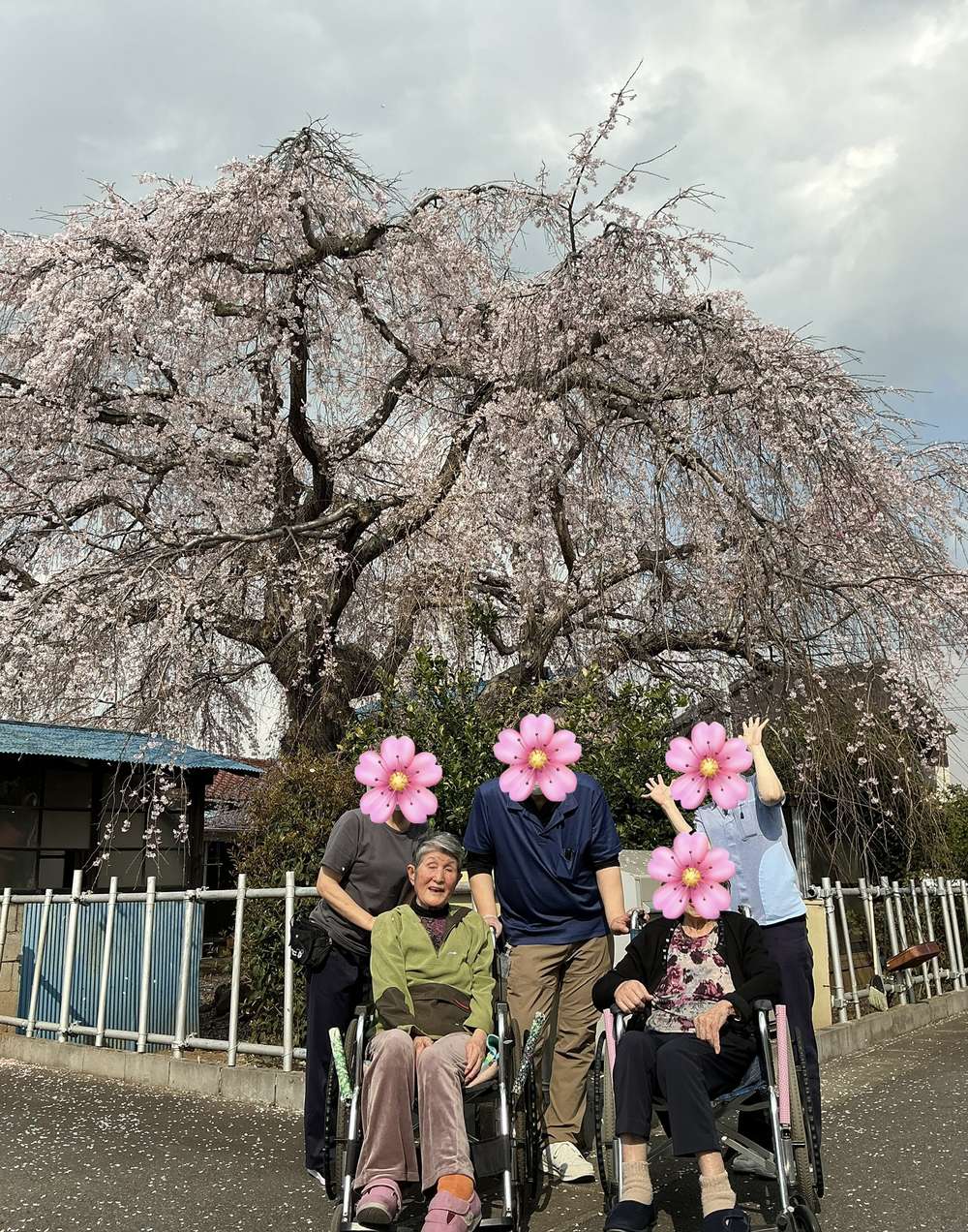 皆さんこんにちは。イリーゼ流山はついしです。今回はお花見の様子をお伝えします。雨の日が多く、行える日が『今日しかない』という日でした。しかしお風呂もある・事務所スタッフも受診がある・他職種にも協力が必要でした。そんな中、看護スタッフが『もしやるなら全力で手伝います』と言って下さり、我々事務所スタッフの迷いも消え、お花見を行う事ができました。