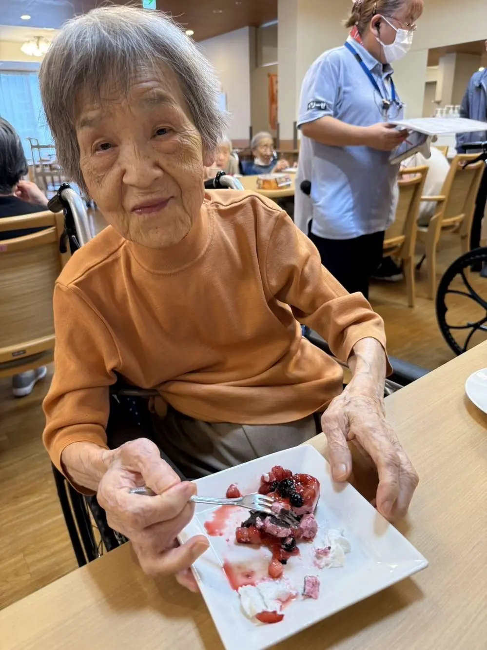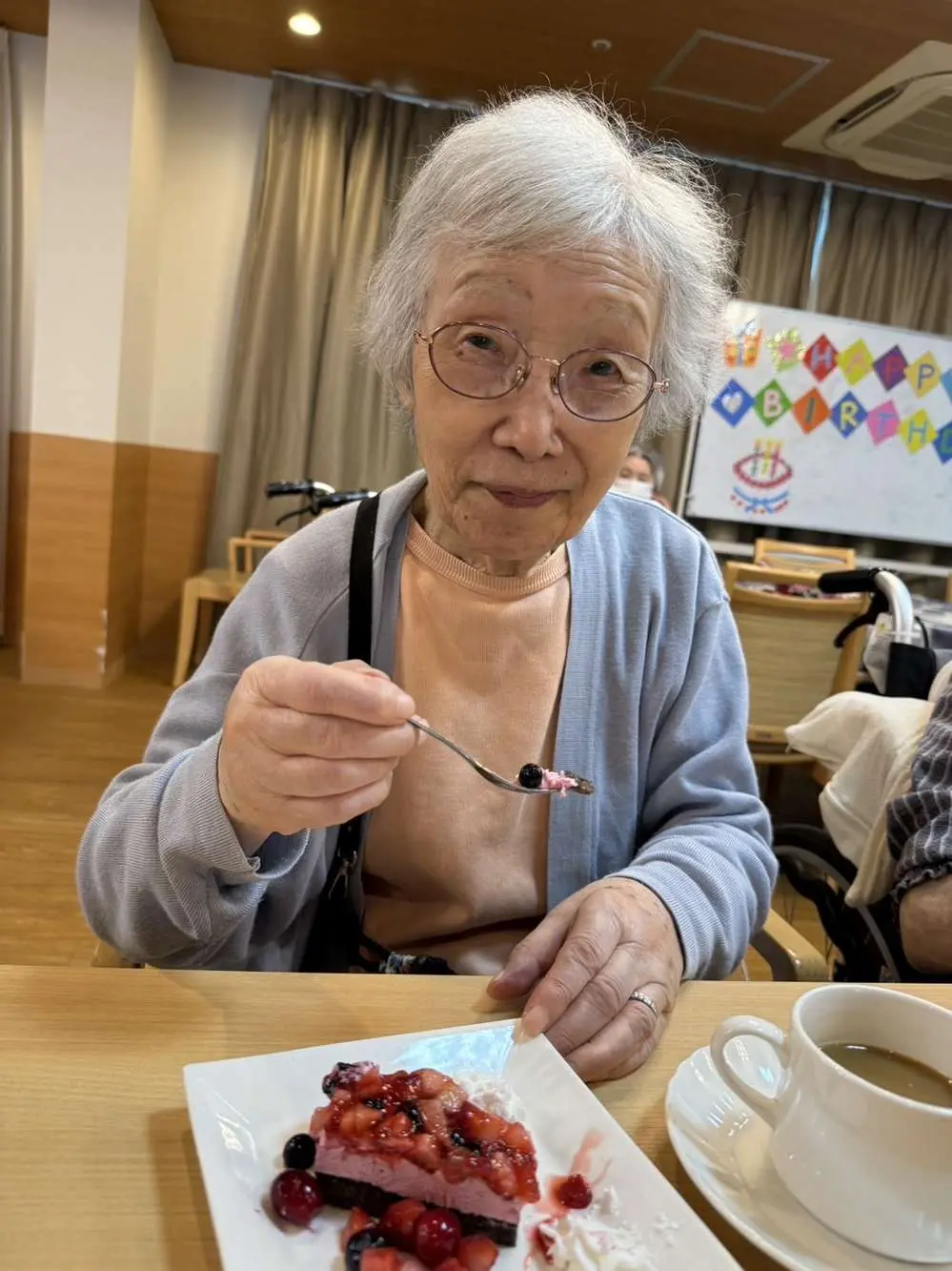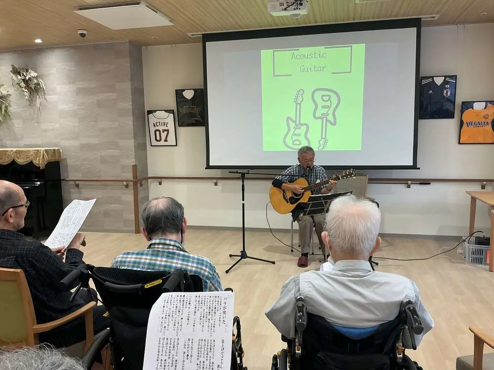 最初の一音が響いた瞬間から、利用者の皆さんの表情が自然と柔らかくなり、目を閉じて音楽に聴き入る方や、微笑みながら手を動かす方もいらっしゃいました😁