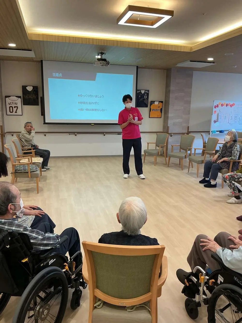 皆様の掛け声に合わせて体を動かすうちに、自然と笑顔が広がり、