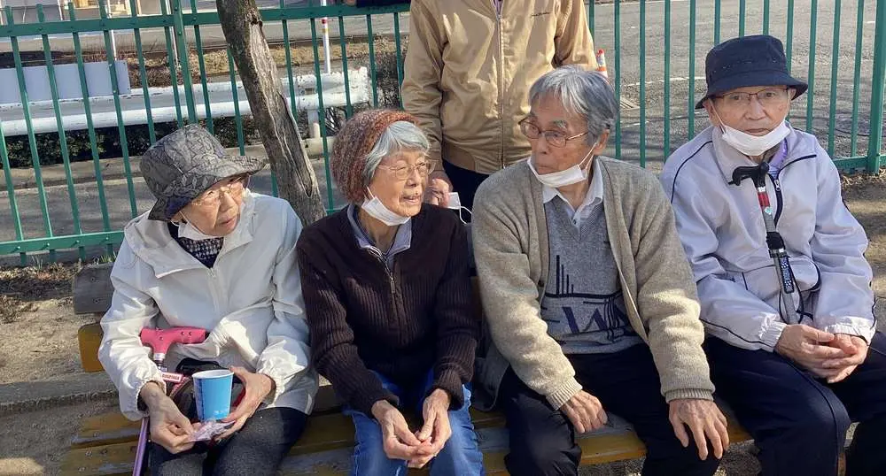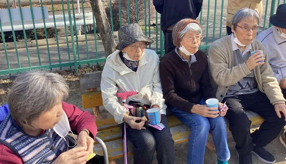 入居者様も外に散歩に行きたいわねという声に、職員も「今日は暖かいからお散歩行きましょうか」と声を掛け、皆さんで近くの公園までお散歩レクです。