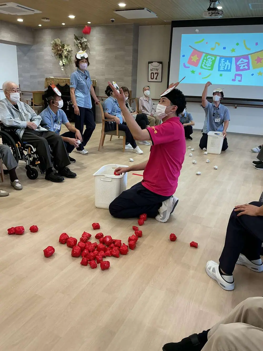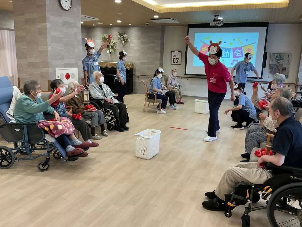 紅白に分かれたチーム対抗戦で、利用者の皆さまも自然と笑顔が広がっていました😆