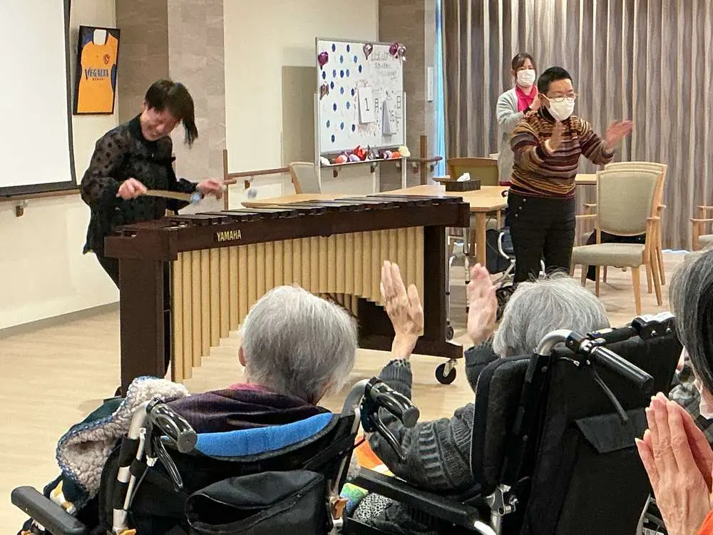 今月は3名の方がお誕生日を迎えました!おめでとうございます~!入居者様からのお祝いに歌のプレゼント!「うちの女房にゃ髭がある」をスタッフと一緒に披露下さりました。