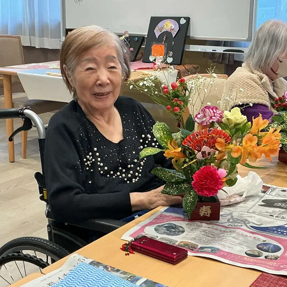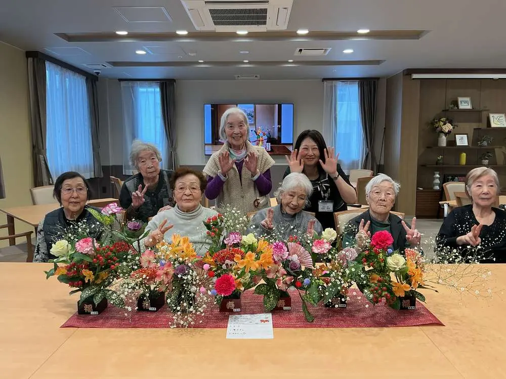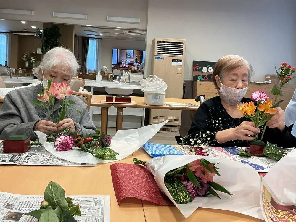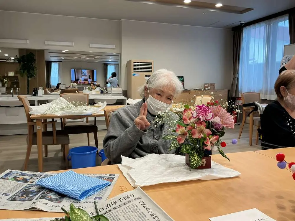 入居者様お一人お一人にお花をご準備させていただき、それぞれご自身の感性で生け花を楽しんでいただきました。