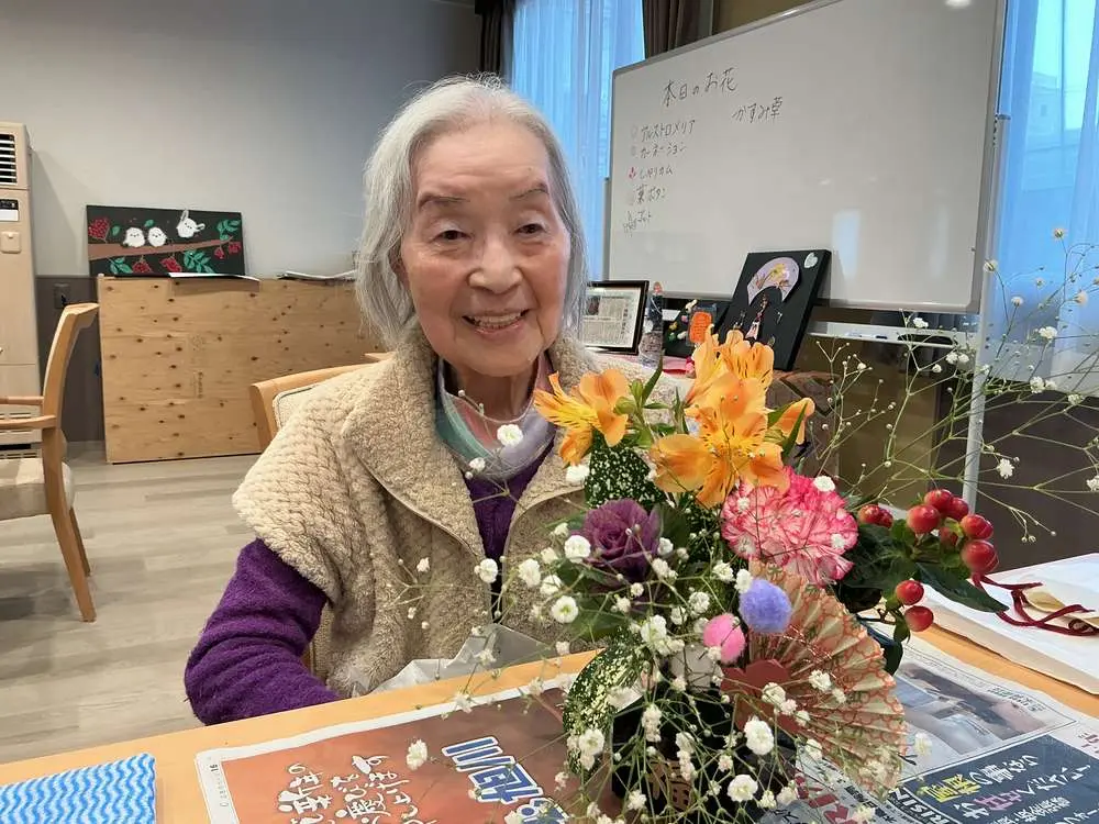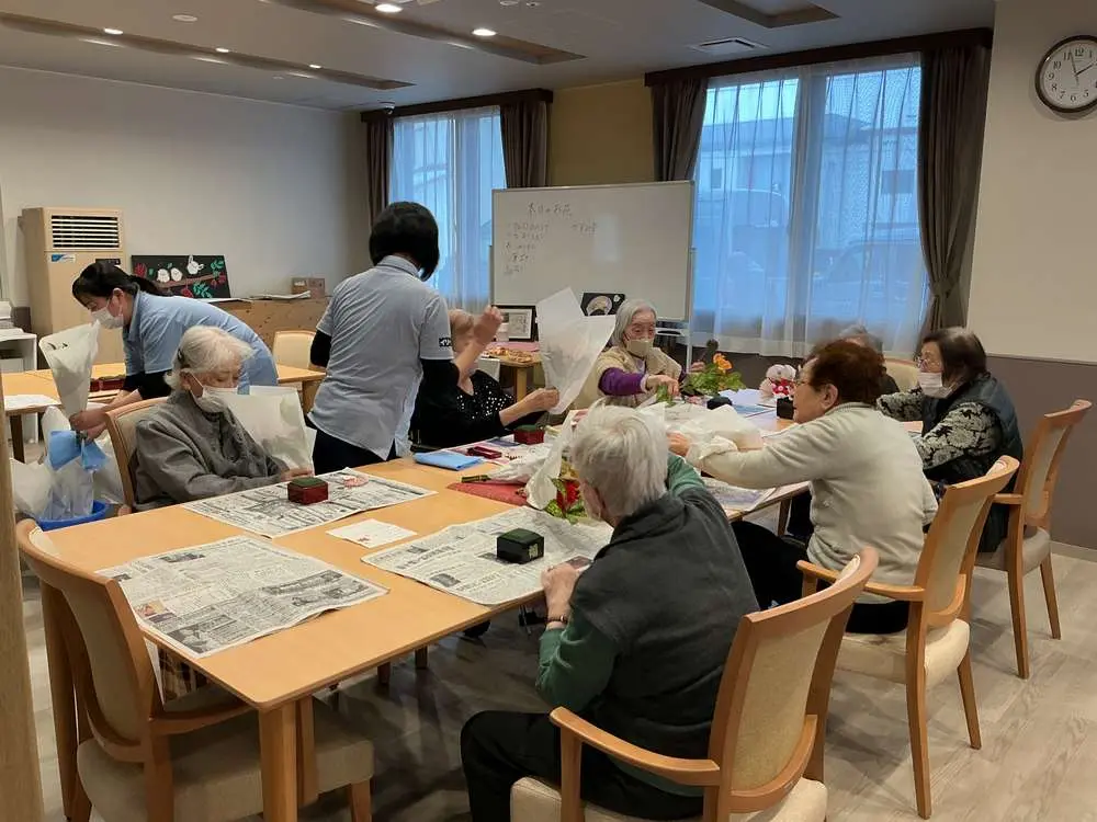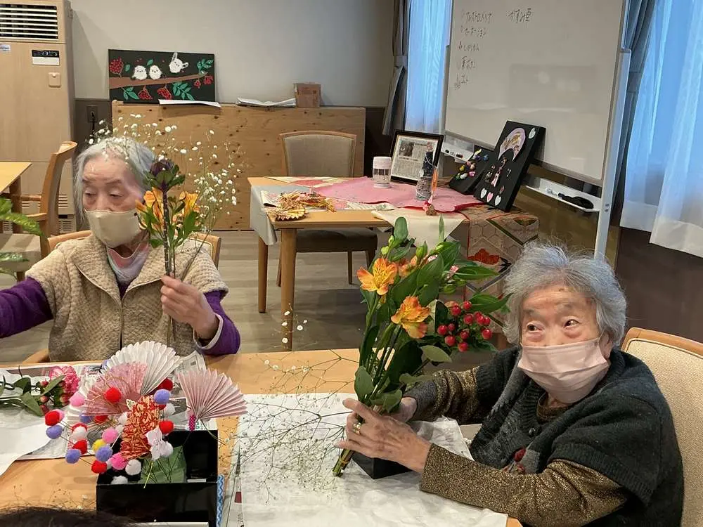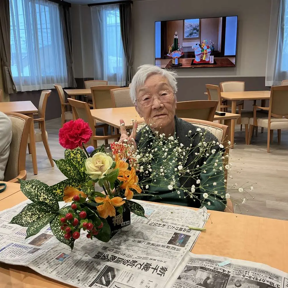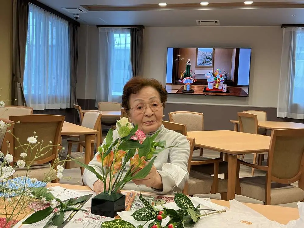 入居者様お一人お一人にお花をご準備させていただき、それぞれご自身の感性で生け花を楽しんでいただきました。