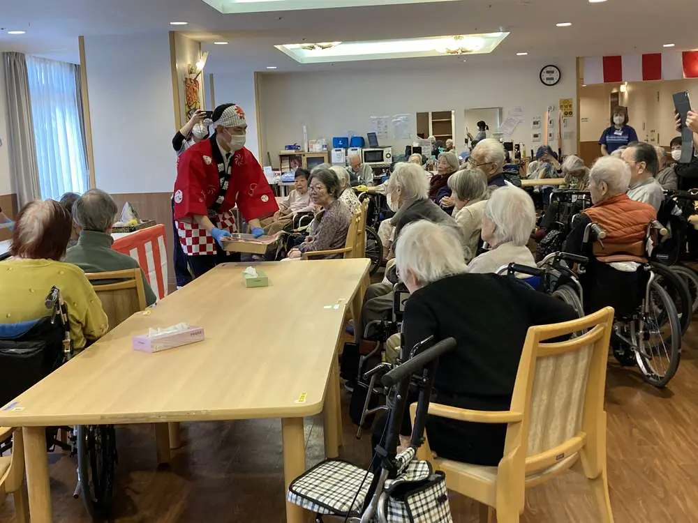 「わあ、立派ね」「このお顔、優しいわ」 入居者様から歓声が上がります。