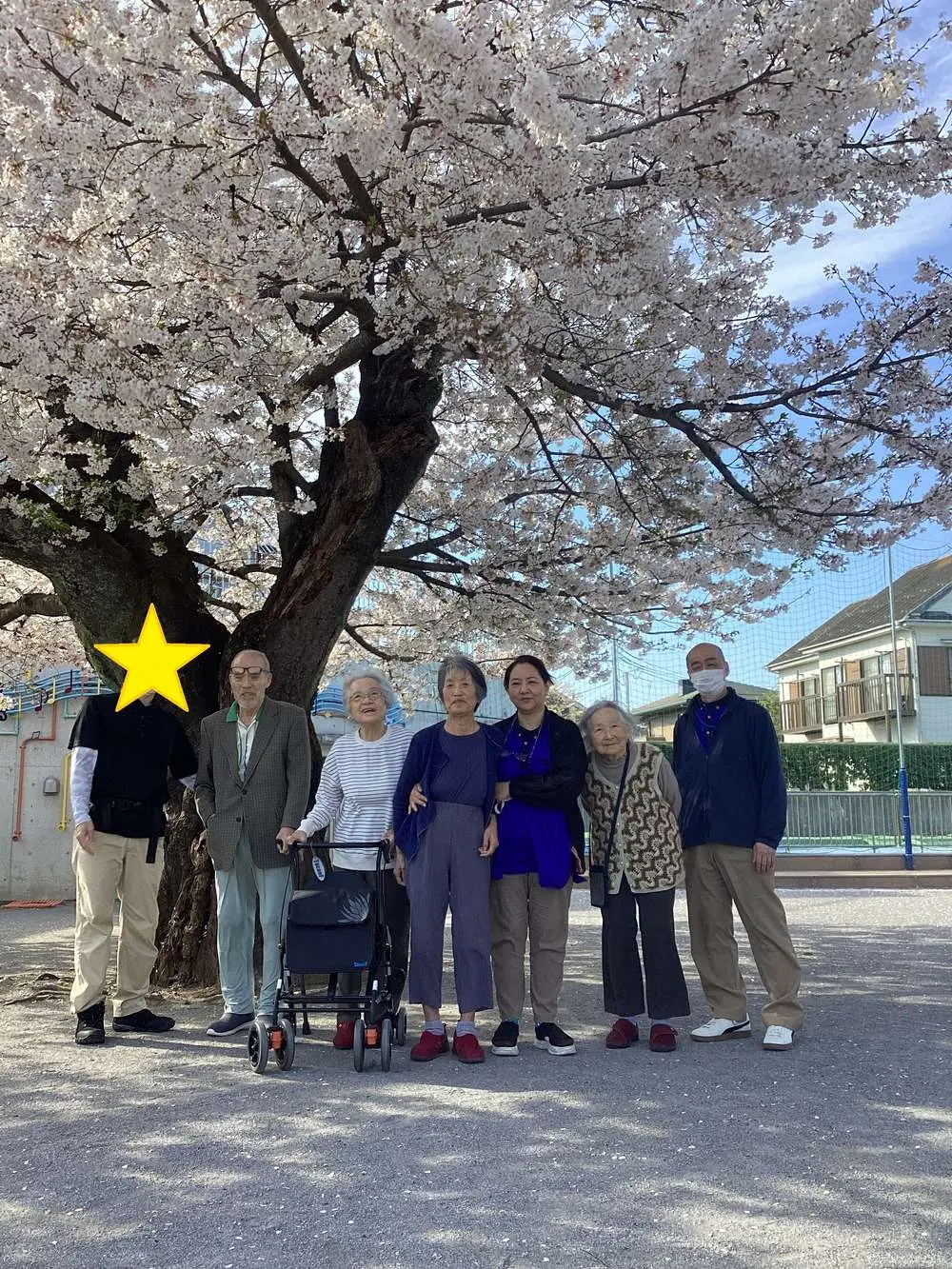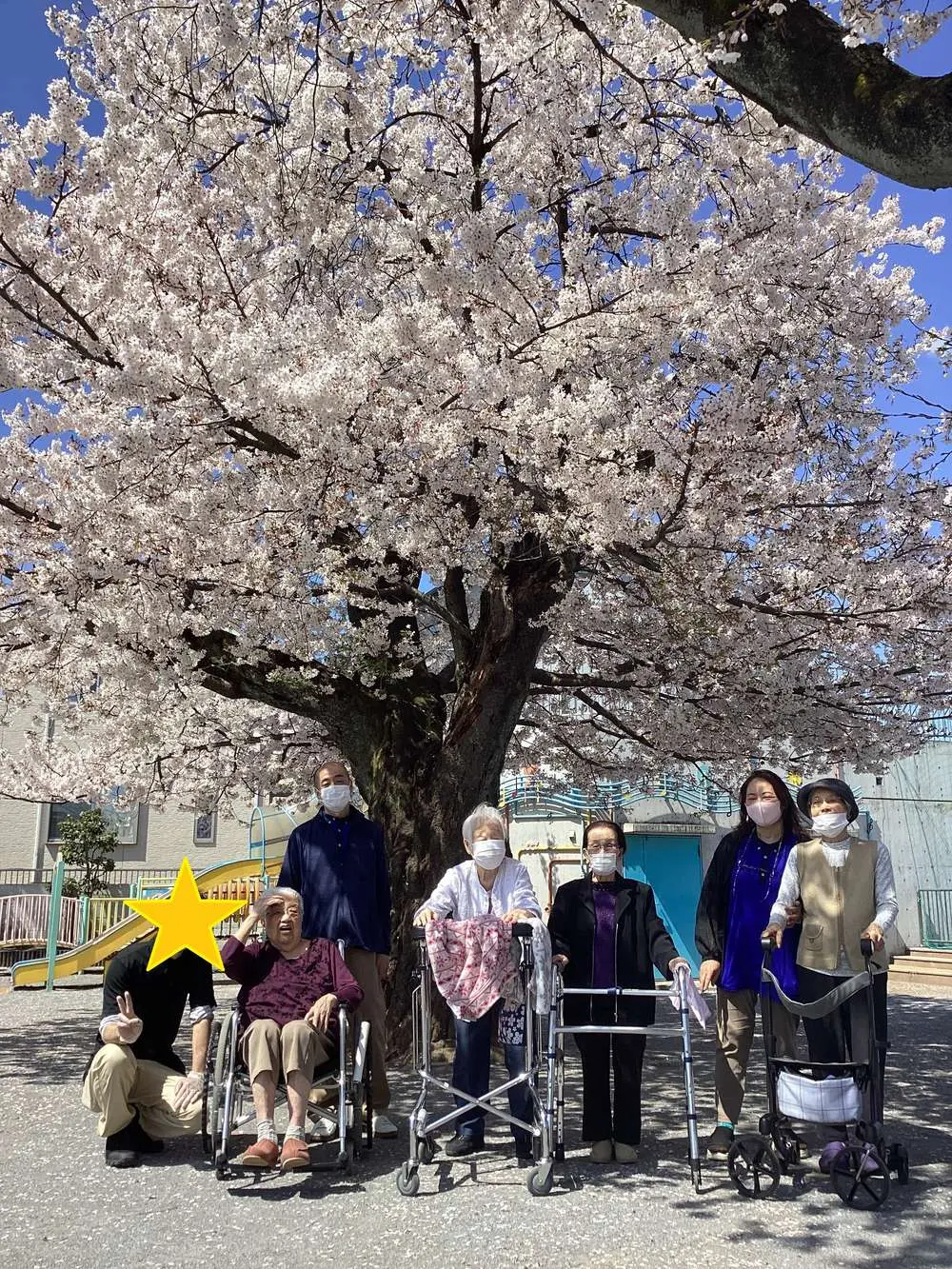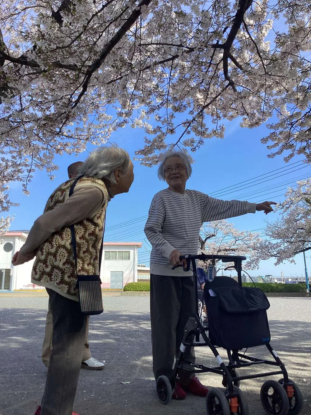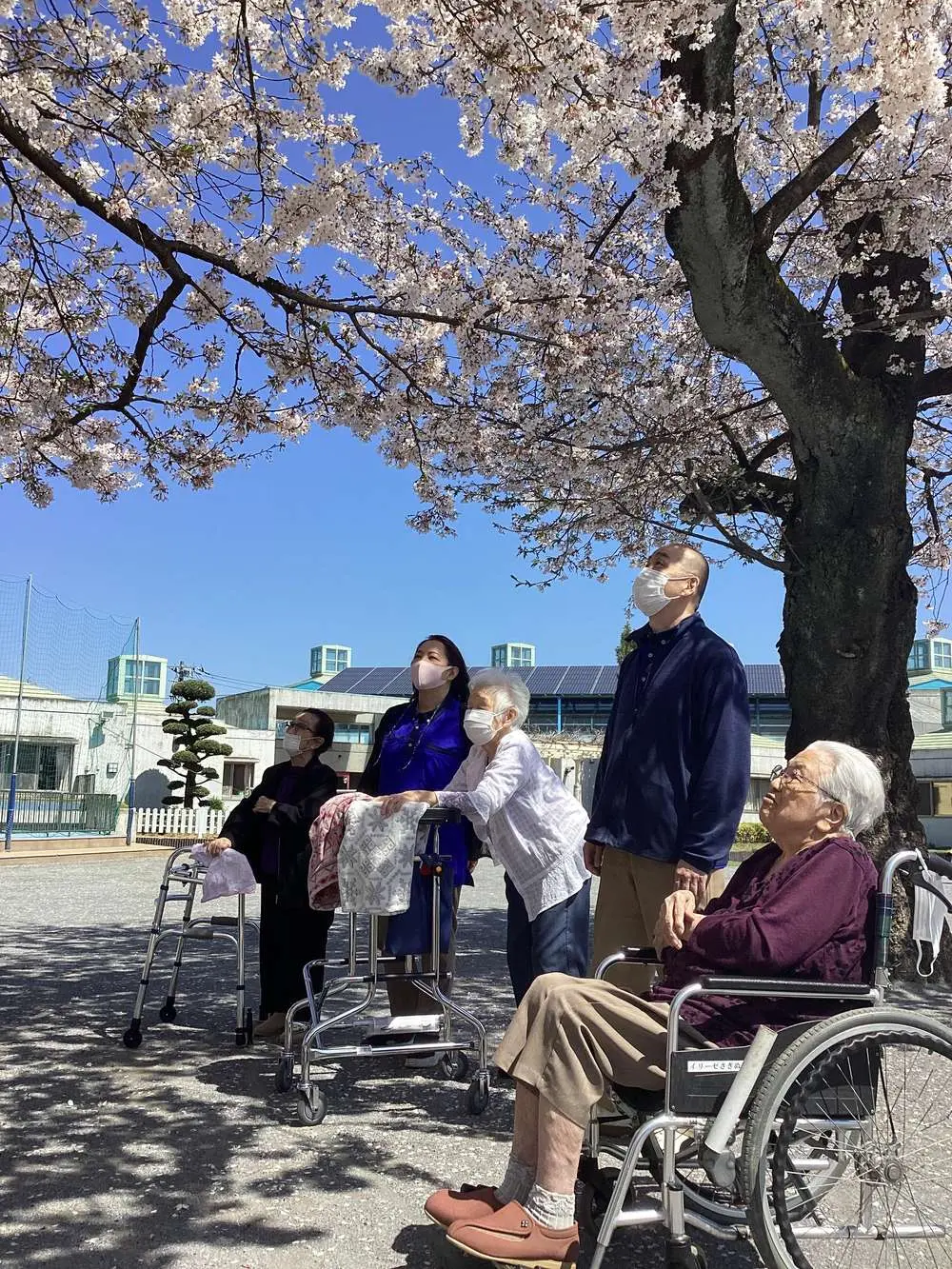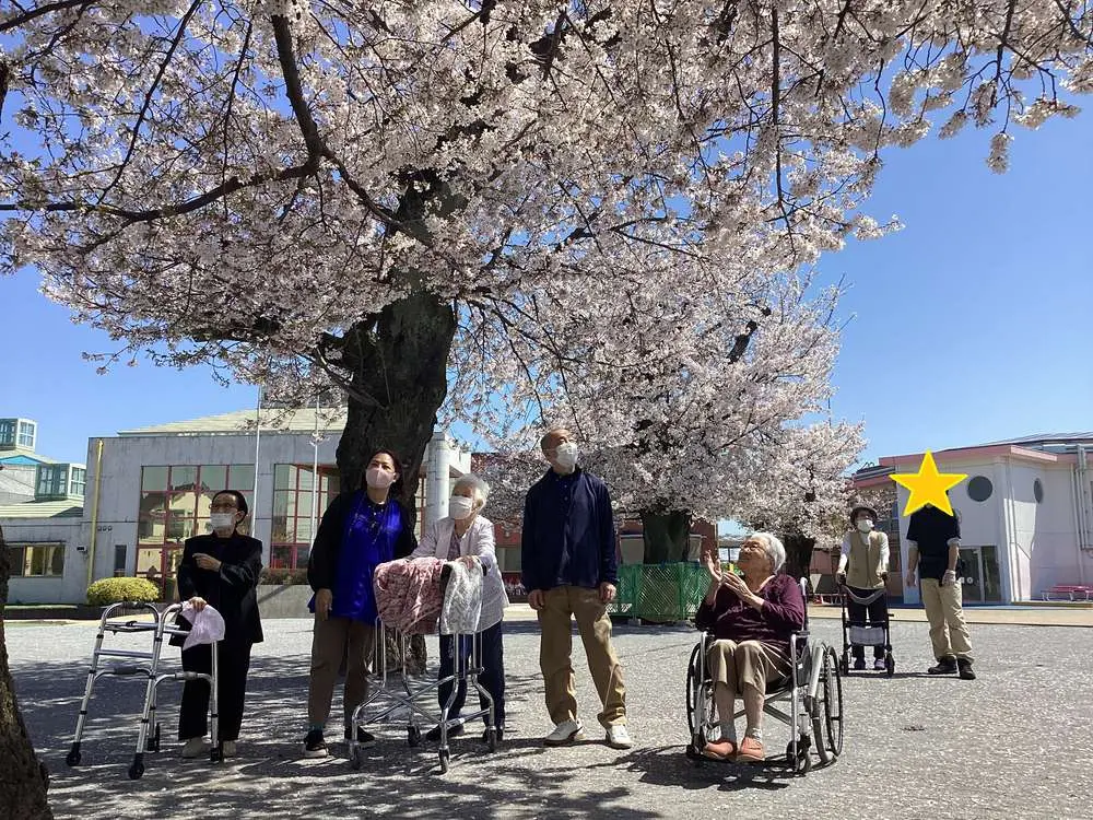 『桜きれいね』『いい天気でよかった』と喜ばれていました。御家族様が御面会に来られていた方も一緒に参加して頂きました。御協力頂きありがとうございました。