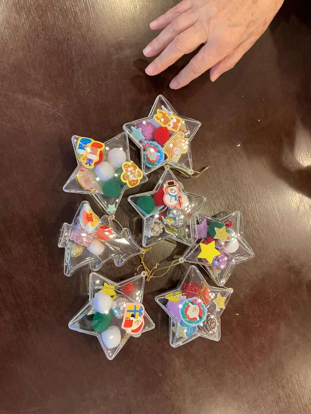 リボンやボンボンなどパーツなどを使って、思い思いに飾り付けをしていきます。