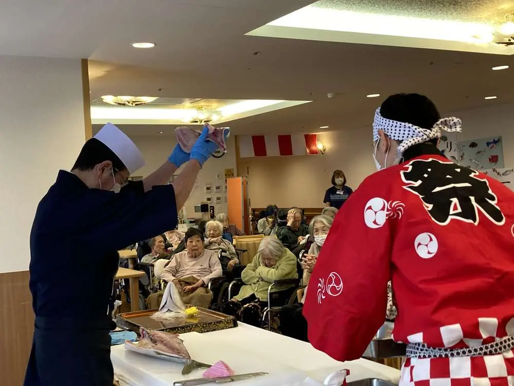 1/25㈰午前中~ブリの解体ショーを1F食堂にて行いました☆彡