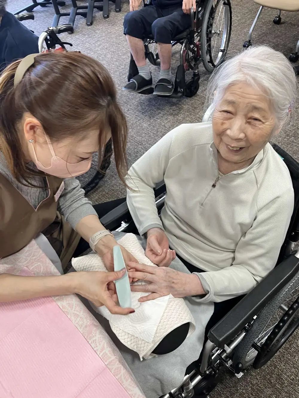 爪磨きをされた方の爪を見るとつやつやで光を放っており職員や他のお客様からも「綺麗~✨」や「磨く事は大事」と面白いコメントをいただきました\(^o^)/