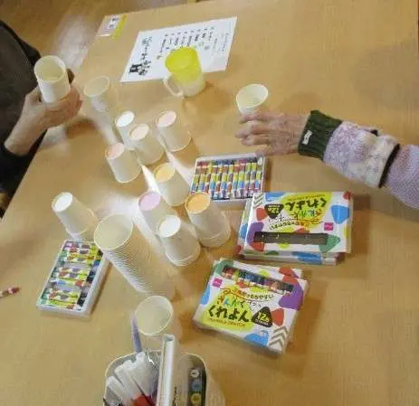 施設で本物の豆を使用した豆まきは、利用者様のケガや誤嚥の危険性があります。また撒いた豆を拾って食べることも衛生的に良くありません。今回の豆まきでは、新聞紙を丸めたボール状のものを豆に見立てて行いました\(゜ロ\)(/ロ゜)/
