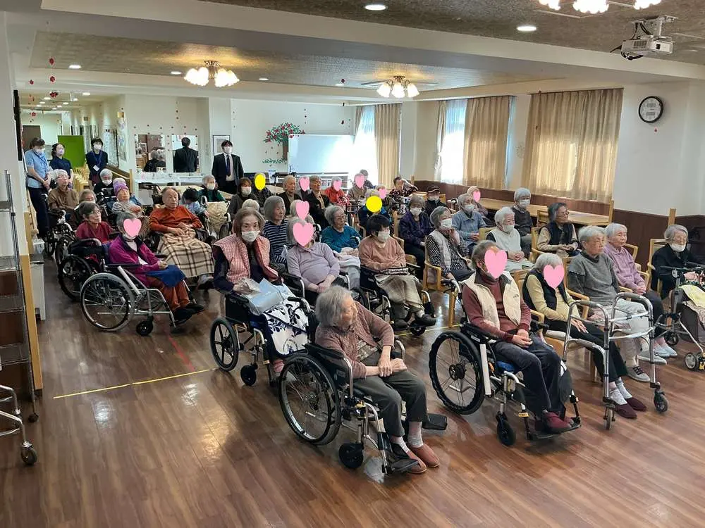 職員が鬼の面とかつらで鬼に扮して入居者の皆さんには鬼に豆をぶつける鬼退治レクリエーションを行い、季節の移り変わりをより強く実感していただきたく計画いたしました。