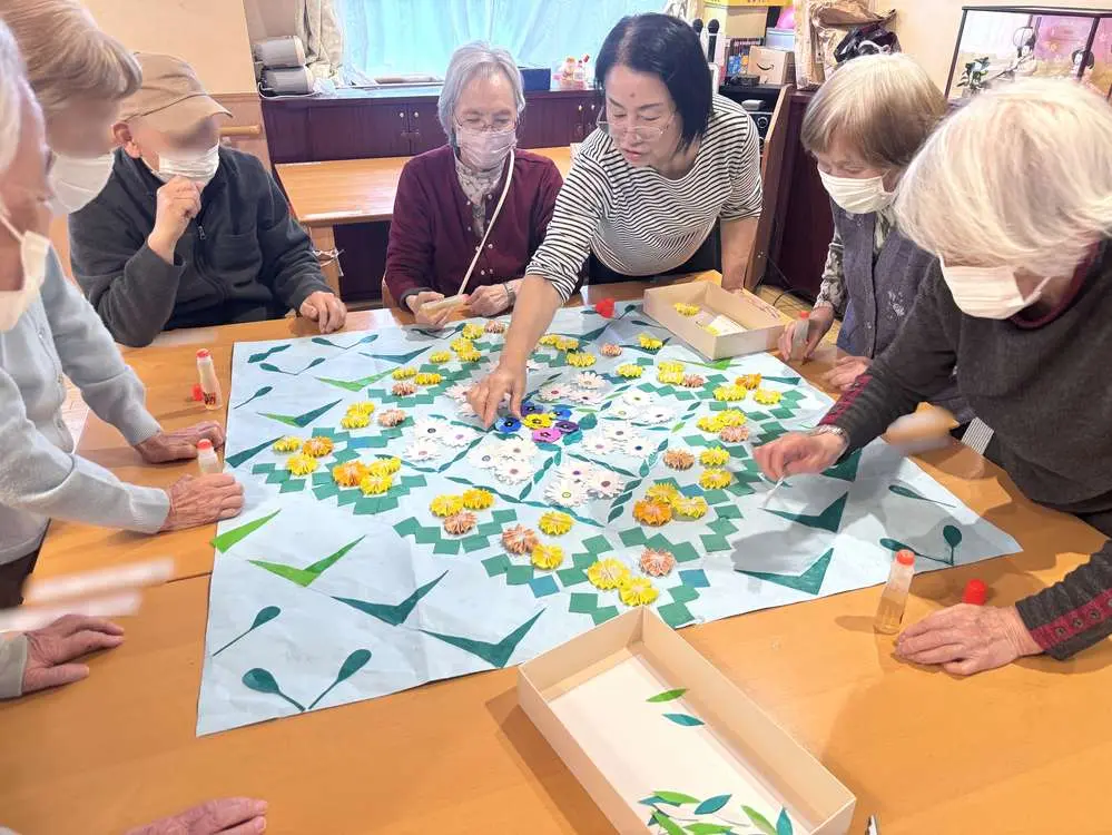 新しい壁飾りが、ご入居者様やご家族様、お客様にとって新たなフォトスポットとなり、春の風とともに笑顔がつながる優しい空間となればと願いを込めて、和やかな雰囲気の中で皆様と春の準備を進めております。
