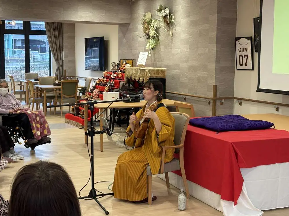 三人官女や五人囃子までそろったひな壇はとても華やかで、見ているだけで心が明るくなりますね。昔、ご自宅で飾っていた思い出話に花が咲く場面もあり、ほっこりとした時間が流れました。