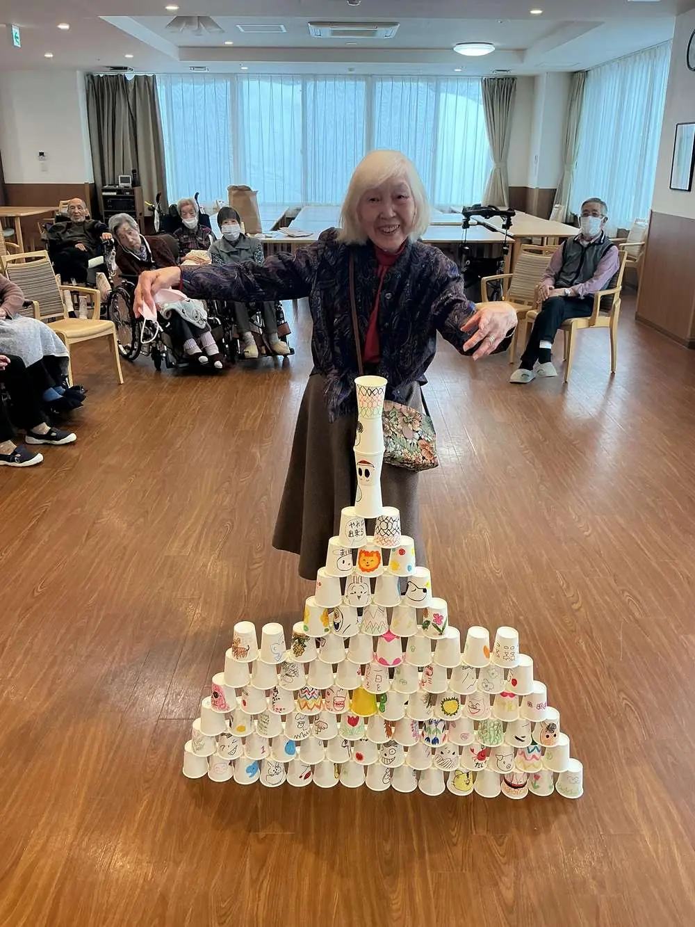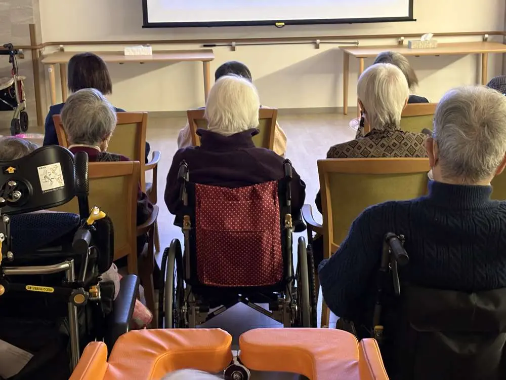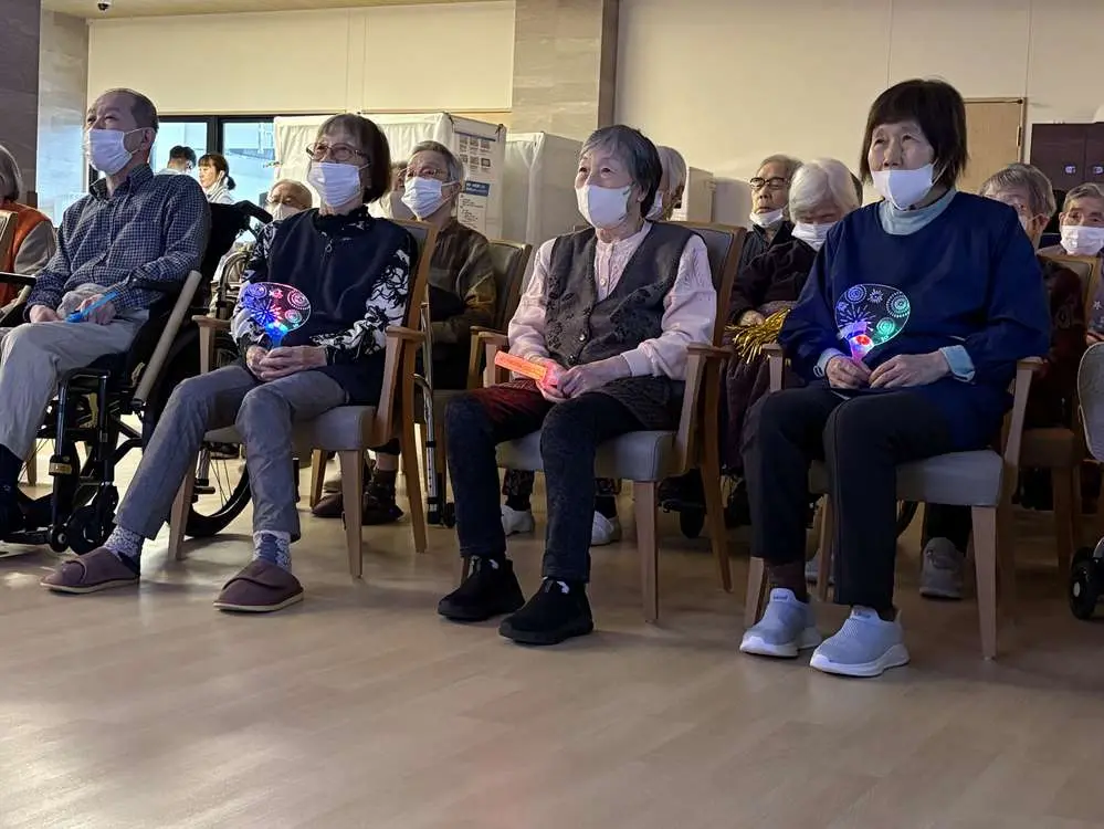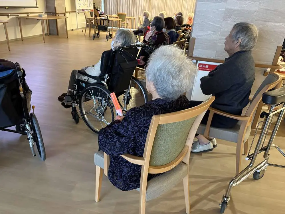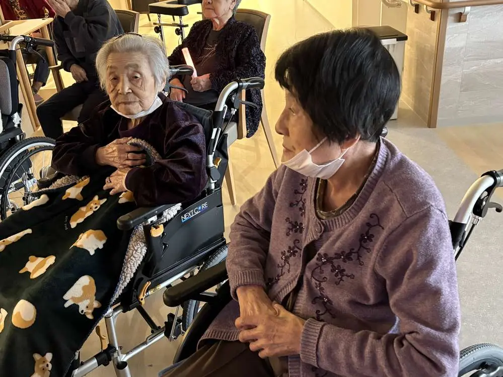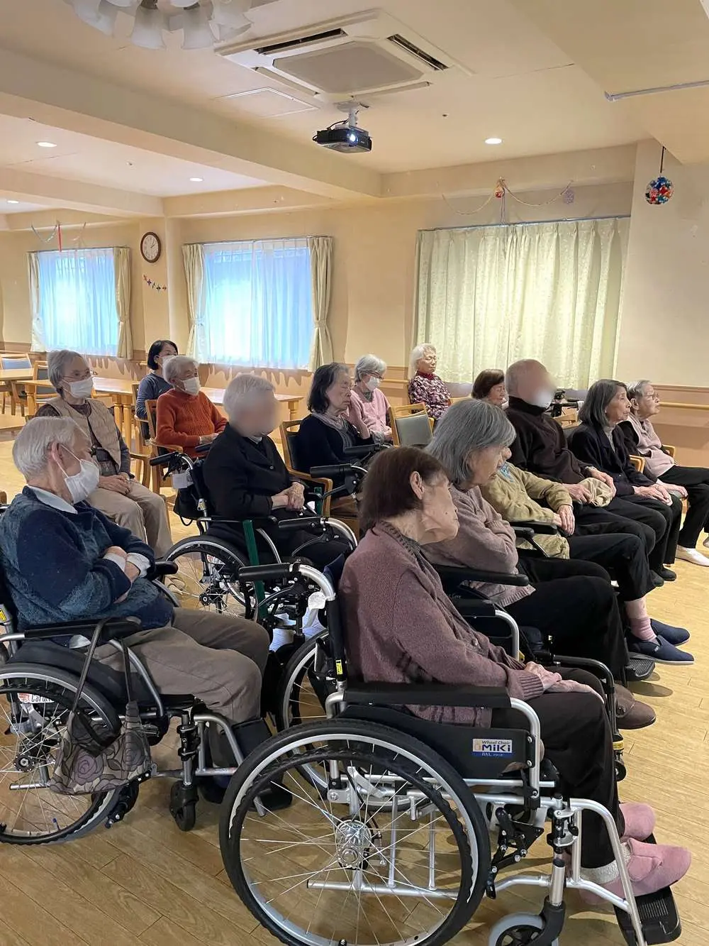 「わあ、立派ね」「このお顔、優しいわ」 入居者様から歓声が上がります。