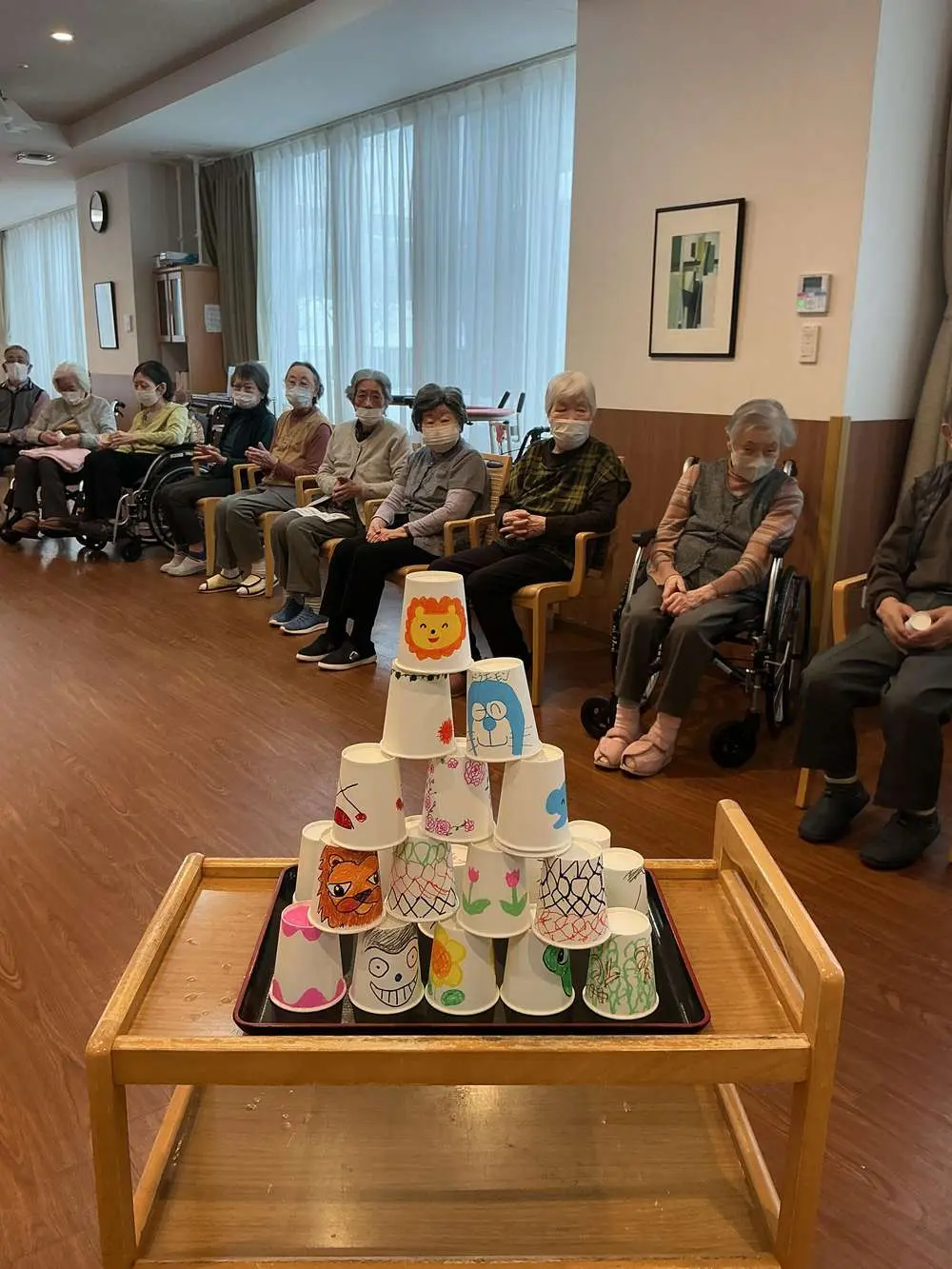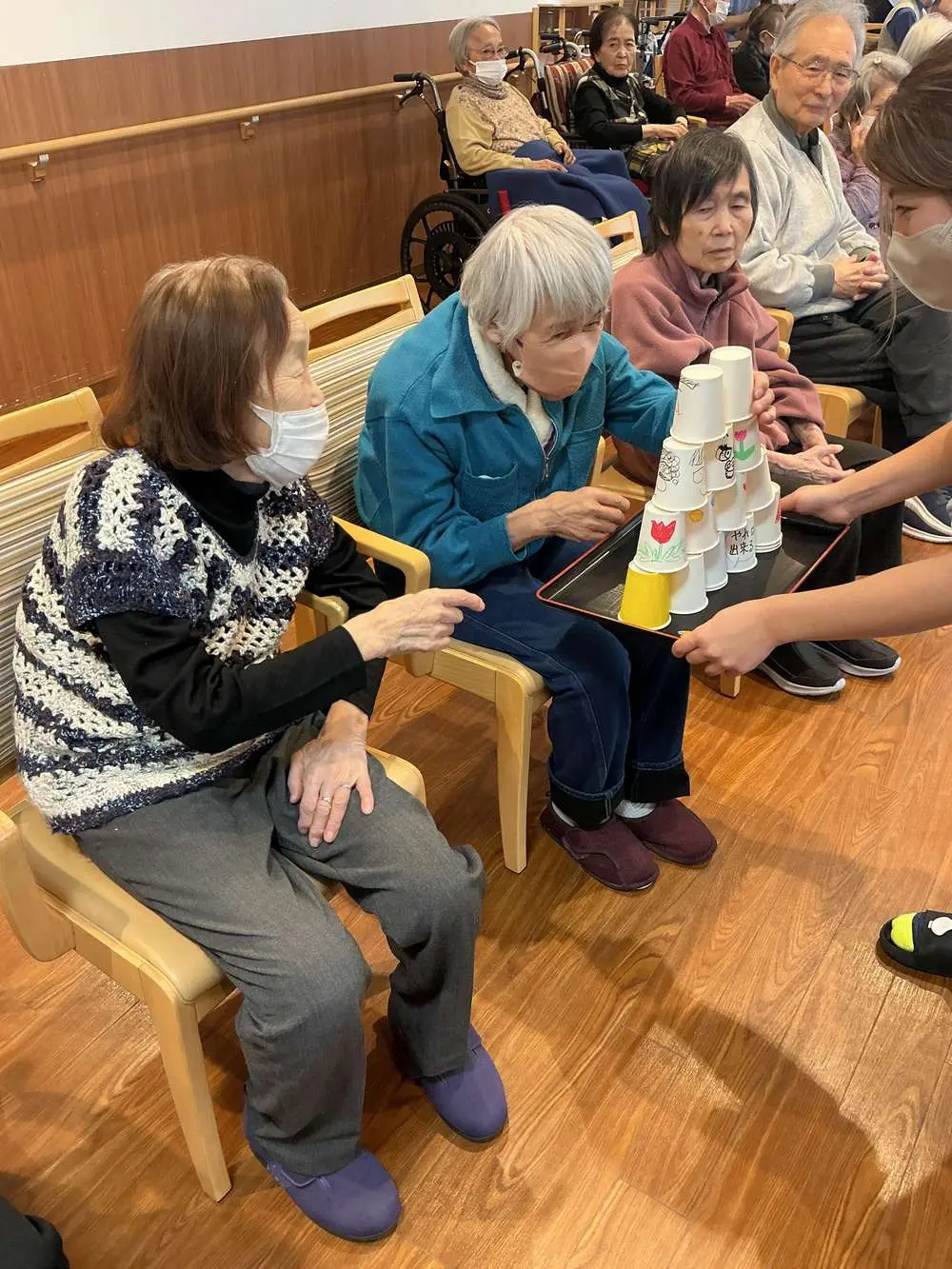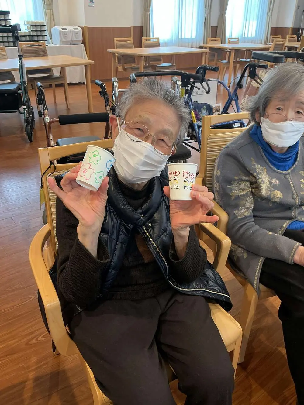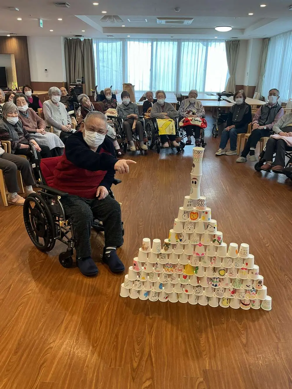 「わあ、立派ね」「このお顔、優しいわ」 入居者様から歓声が上がります。