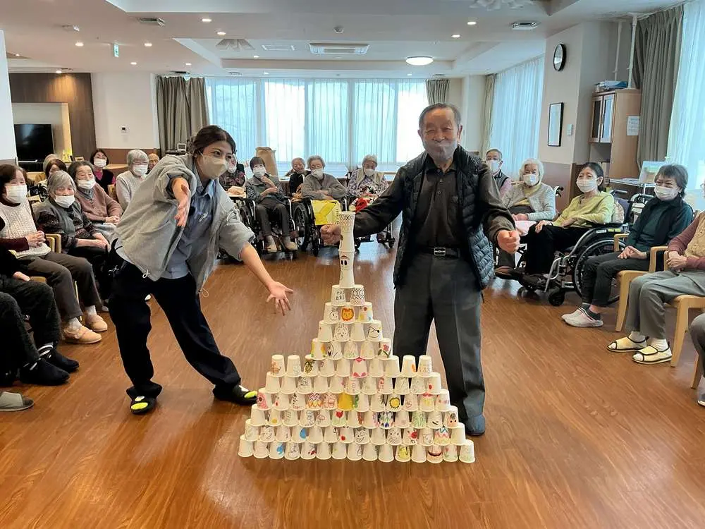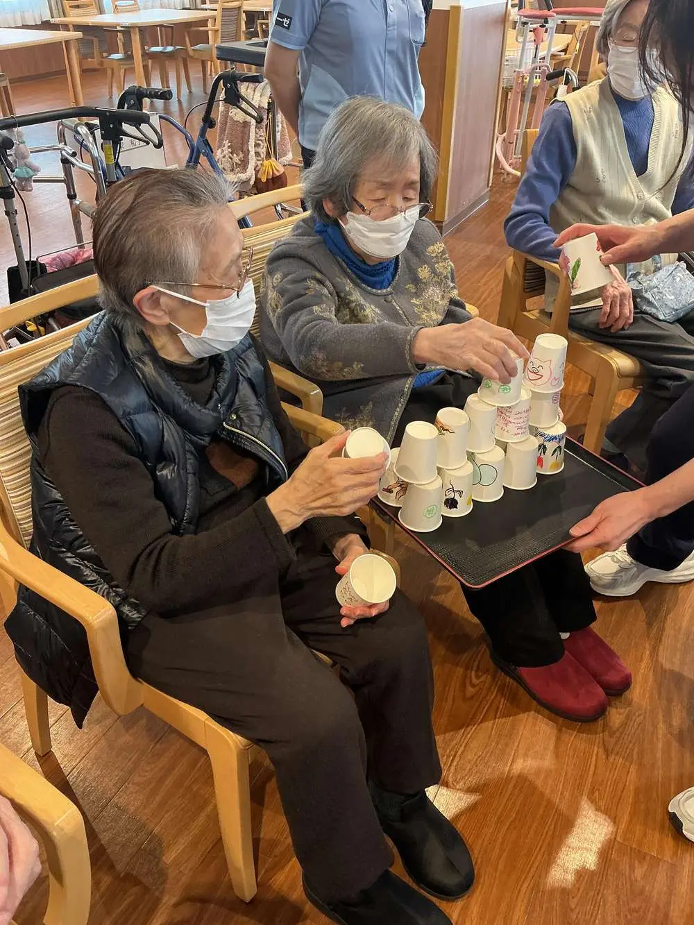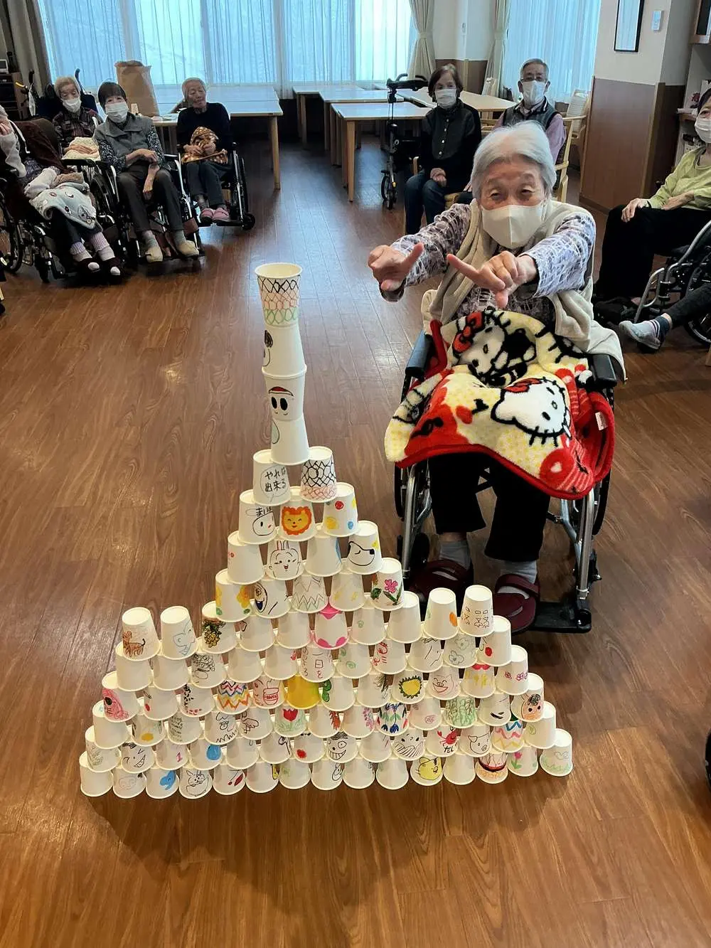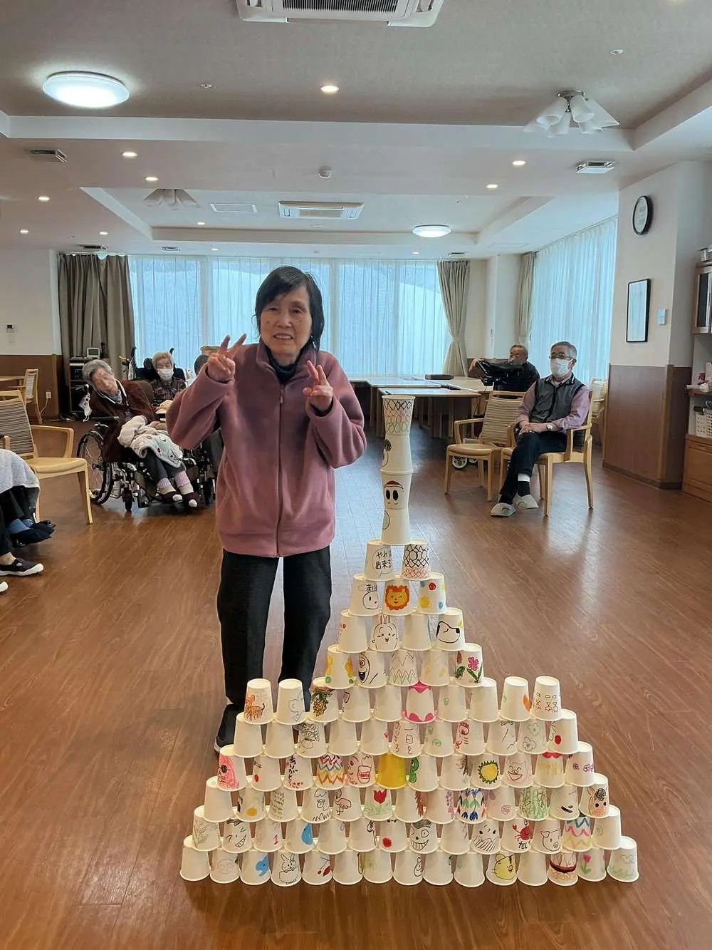 「わあ、立派ね」「このお顔、優しいわ」 入居者様から歓声が上がります。