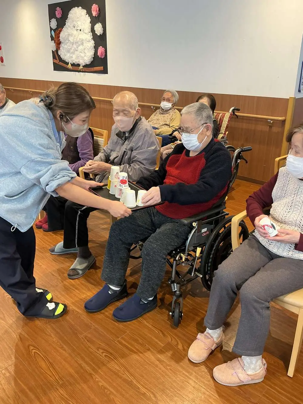 当施設では、一足早く春の訪れを感じていただこうと、食堂前に**「ひな人形」**を飾り付けました。