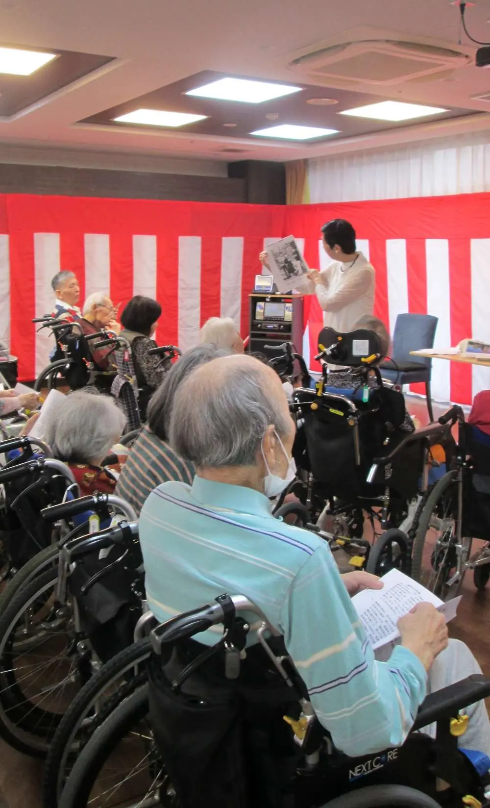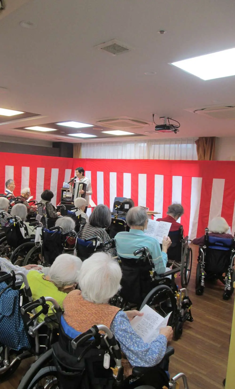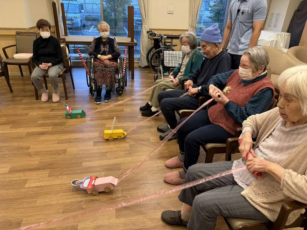 入居者様もあまり聞かない子供たちの笑い声や子供たちの姿に笑顔で手を振っていました。