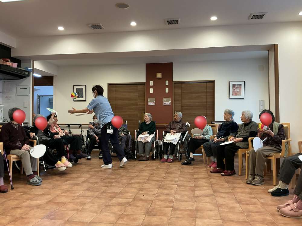 皆さんこんにちは。本日はイリーゼ杉戸VSイリーゼ西大宮のオンライン大運動会を行いました。種目は「玉入れ」「玉運び」「スリッパ飛ばし」「ピンポン玉掴み」の4種類です。玉入れ・玉運びはチームワーク競技、スリッパ・ピンポン玉は個人競技で争いました。皆さん競技になるとがぜん動きが良くなりますよね~。良くなりすぎて転倒注意です(笑)職員も個人戦に参加しました。同点決戦となり、最終対決はホーム長対決となりました。・・・結果は杉戸の勝ち~。西大宮残念。でも皆さんよく頑張り笑いました。やはり勝負になると気持ちが盛り上がります。直前の練習も楽しく行えましたね。また運動会やりましょう。その時は負けないぞ!!