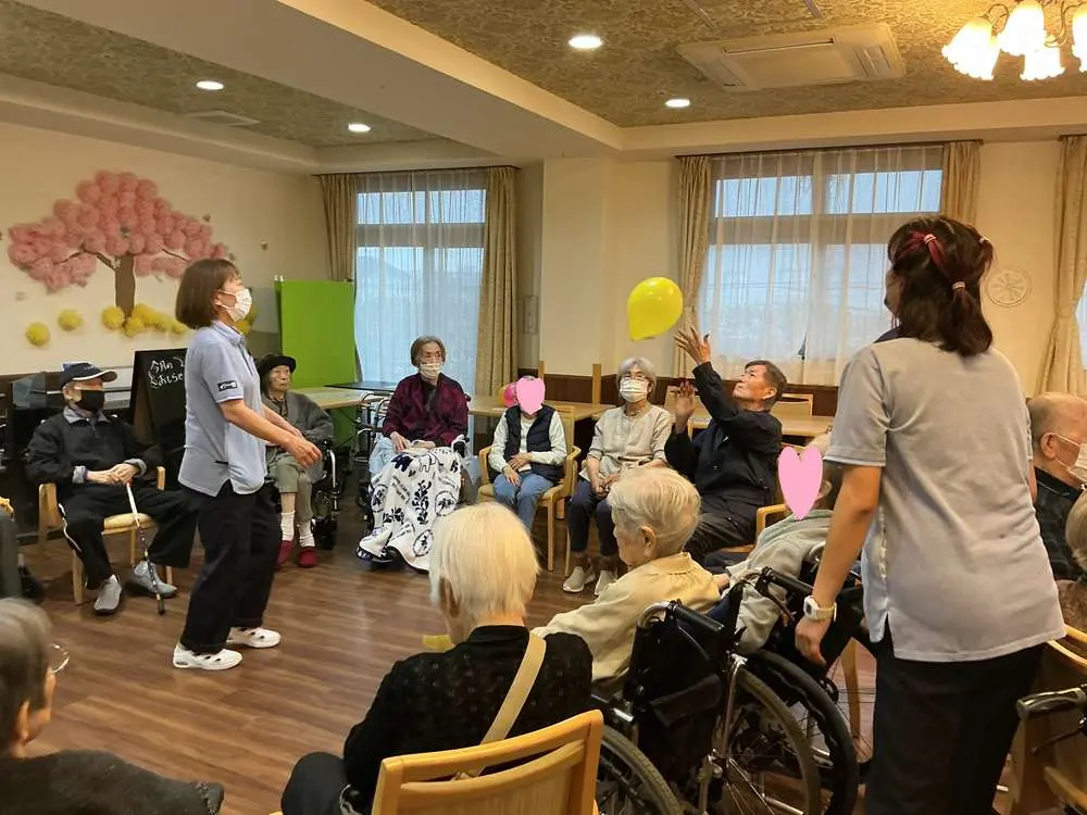 体育の日に「イリーゼ船橋はさま 運動会」を開催いたしました。今回は赤組・白組に分かれての対抗戦。元気いっぱいの選手宣誓から始まり、まずはしっかりとラジオ体操で体をほぐして準備万端!