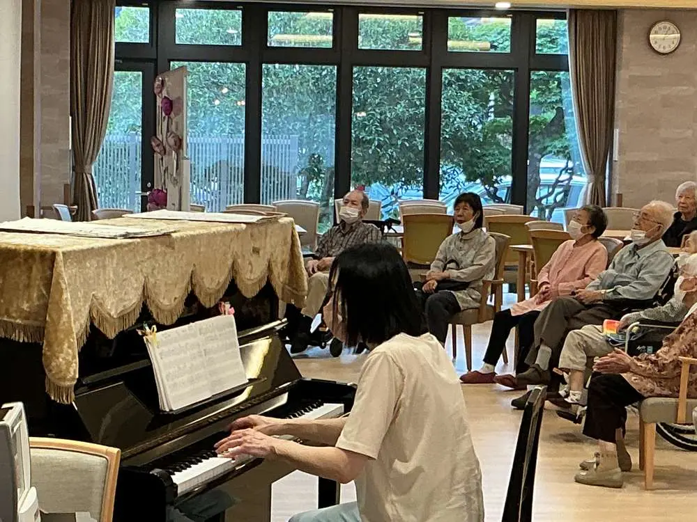 ハーモニカの音色を聴くのは入居者様の皆さん久しぶりで、最初の一音が響いた瞬間から胸がじんわりと温かくなりました🙌🙌
