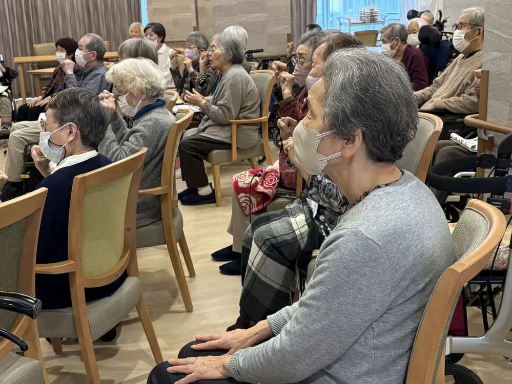 まずは訪問マッサージKEIROWさんがメインとなり行う全身を使って準備体操を行います🙆 体操が終わった後は、滝廉太郎の春🎼を歌いながら手拍子を行うリズミック体操です🎶そして、メインのあやとりです。