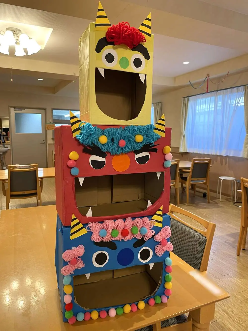 少し早いですが、本日イリーゼ野田では豆まきならぬボールで鬼退治を行いました!