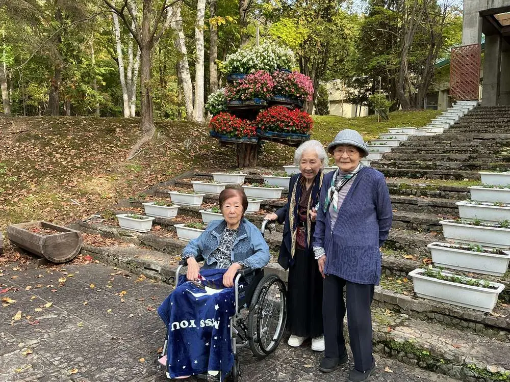 入居者様は「あそこに花が咲いてるわ」「あそこに実がなってるよ!」など日常のちょっとした発見でも、外出レクという日常とは少し違う状況が普段の生活に変化をもたらし刺激となり、入居者様の普段とは違う表情が見られることが職員もうれしいかぎりです(^_-)-☆