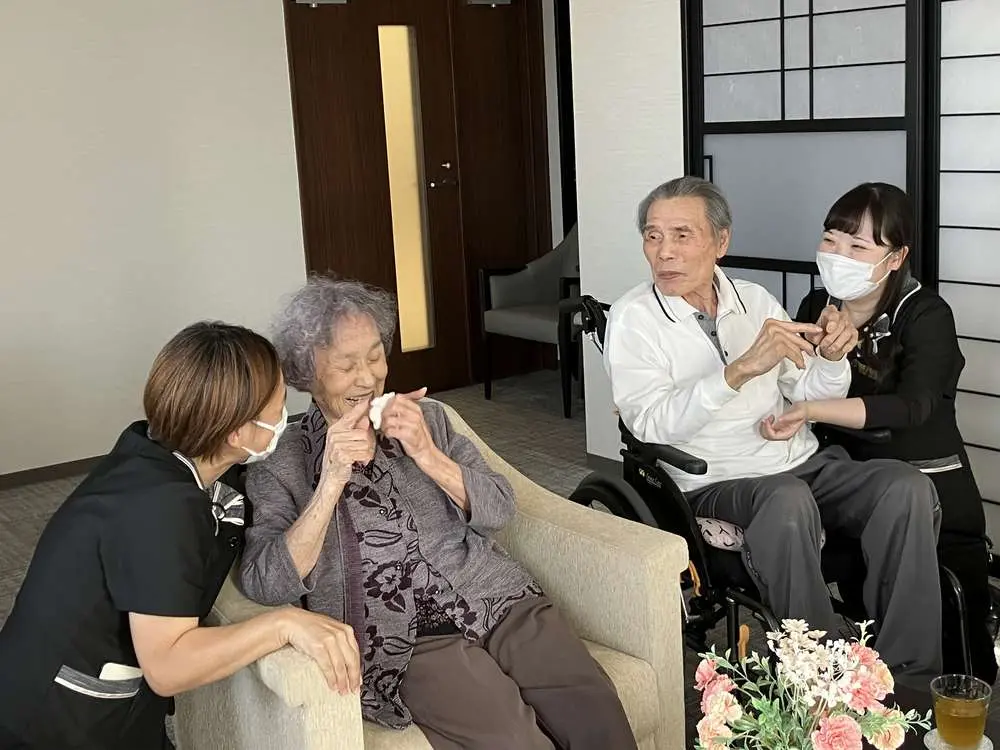 利用者様の中には、目を閉じて音に耳を傾けたり、自然と手拍子をされたりする方もおられ、音楽が気持ちを和ませている様子がうかがえました