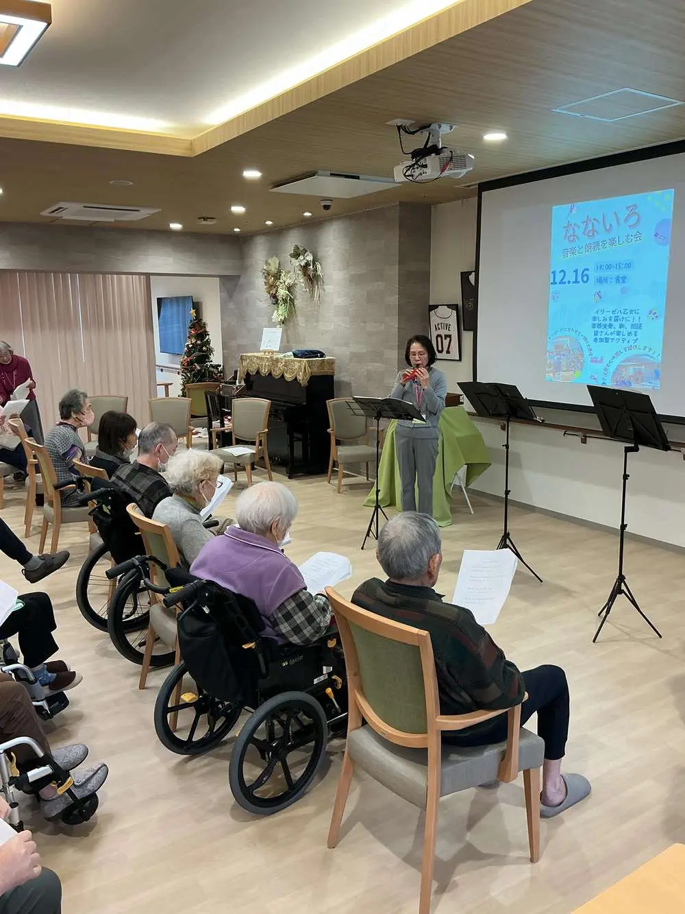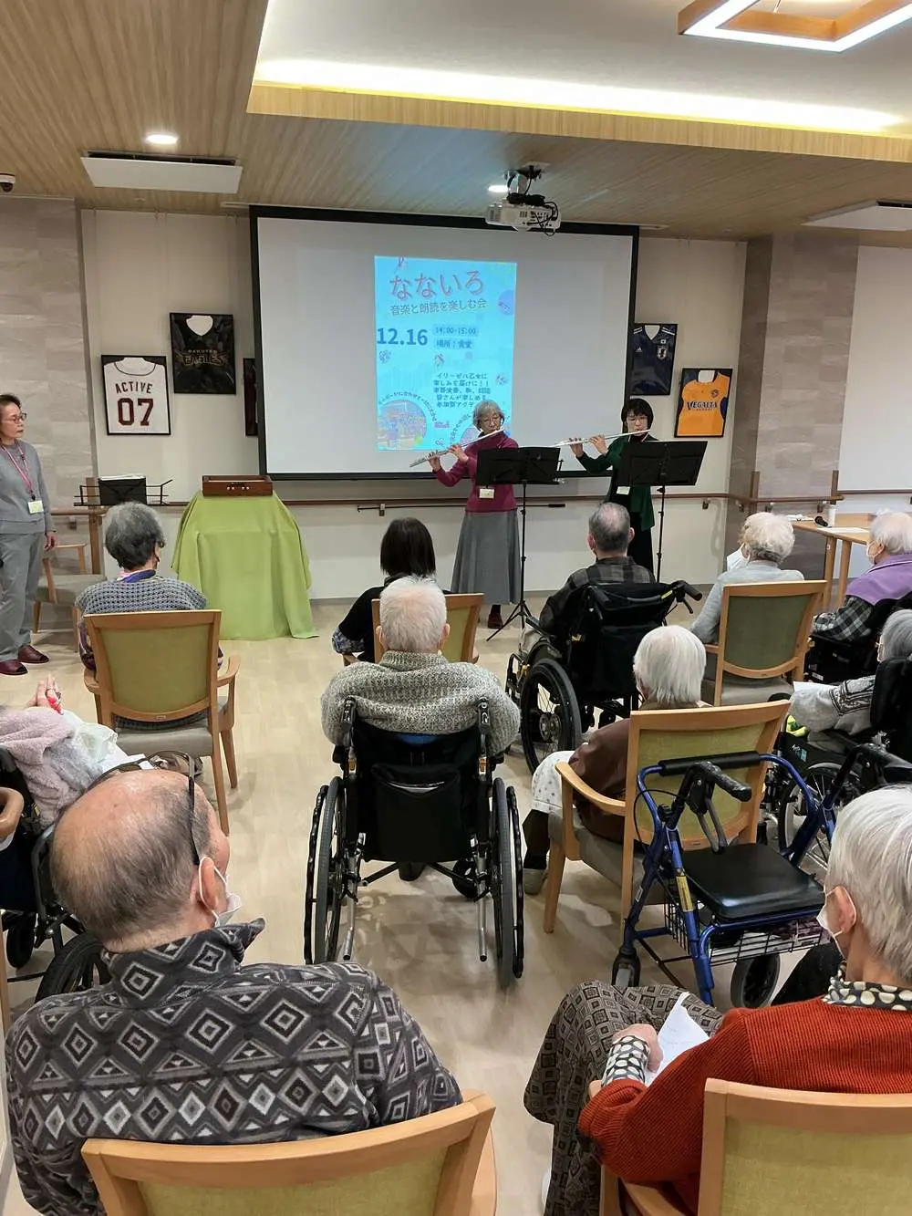 利用者様の中には、目を閉じて音に耳を傾けたり、自然と手拍子をされたりする方もおられ、音楽が気持ちを和ませている様子がうかがえました