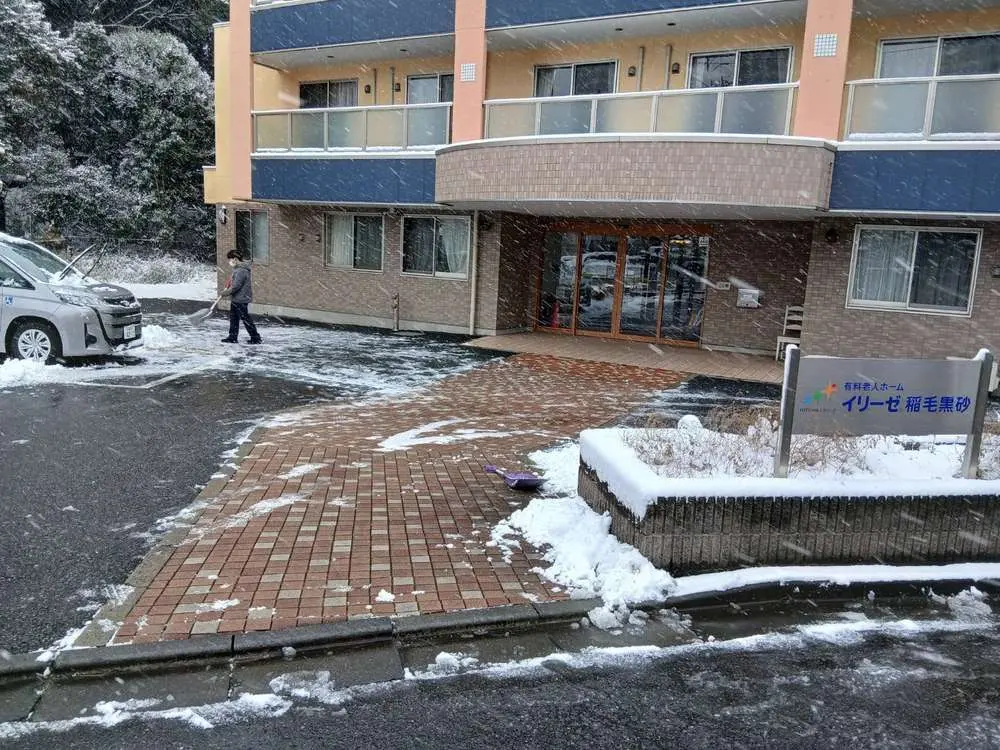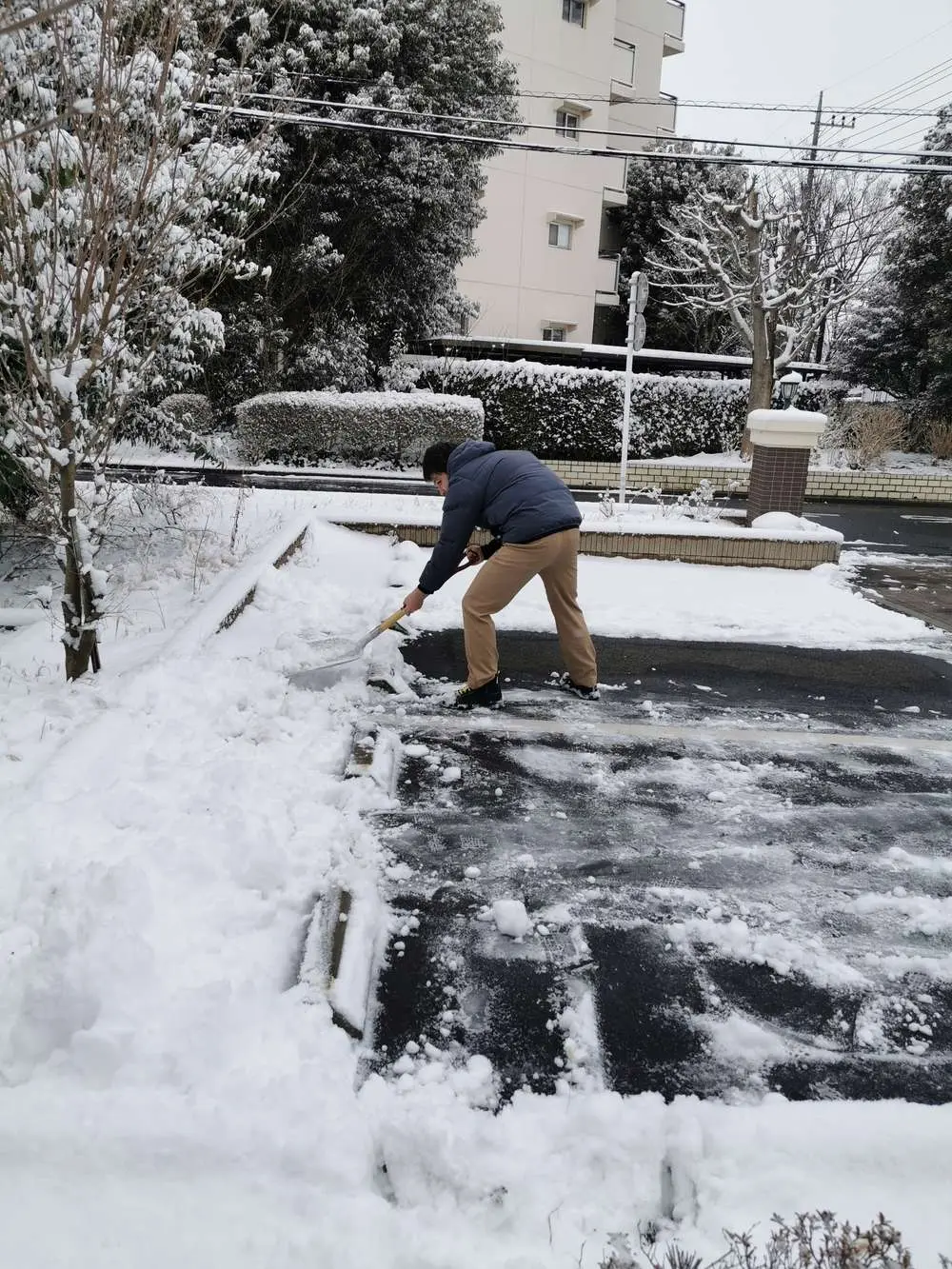 もちろん雪の日でもお客様や外部の事業所様が安全にご来所できるように雪かき行っております。