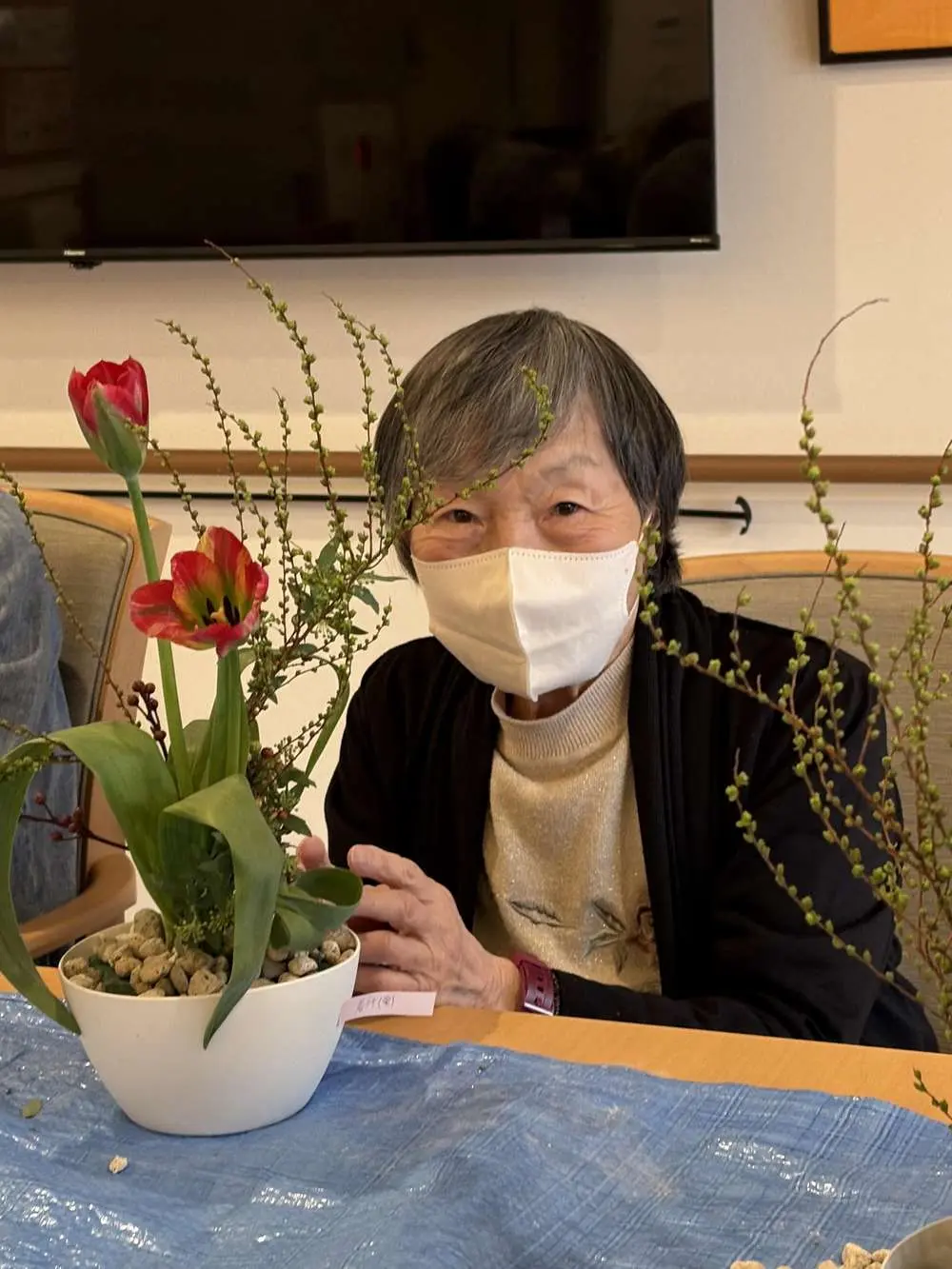 まずは訪問マッサージKEIROWさんがメインとなり行う全身を使って準備体操を行います🙆 体操が終わった後は、滝廉太郎の春🎼を歌いながら手拍子を行うリズミック体操です🎶そして、メインのあやとりです。