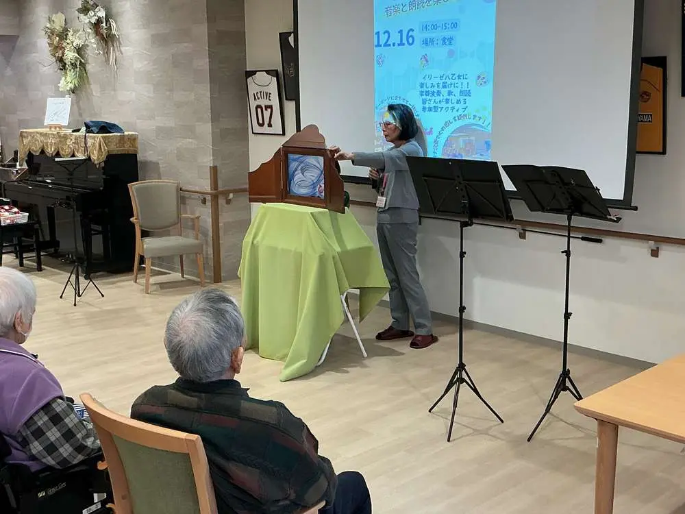 音楽と紙芝居が組み合わさることで、懐かしさや安心感を感じられるひとときとなり、利用者様同士の会話も自然と生まれるなど、心身のリフレッシュにつながる有意義な時間となりました😁