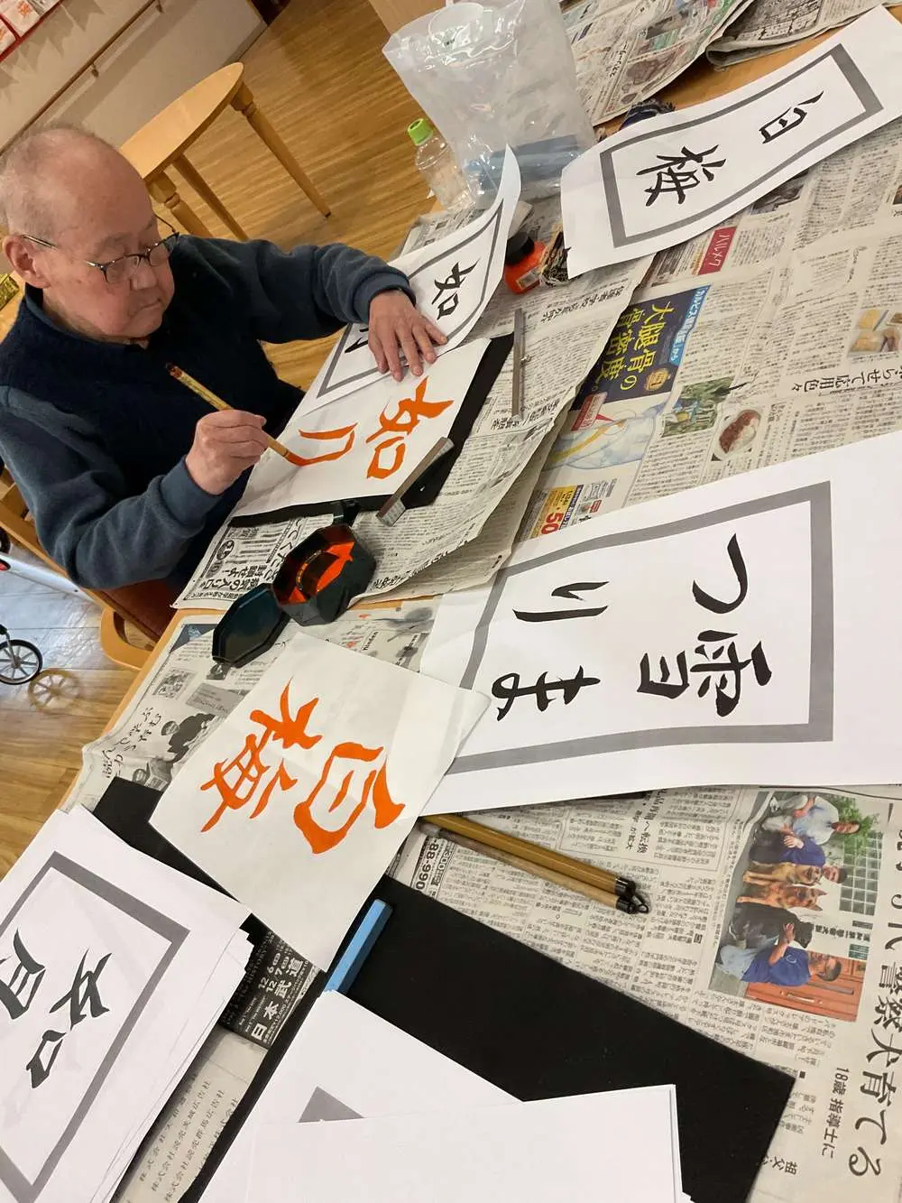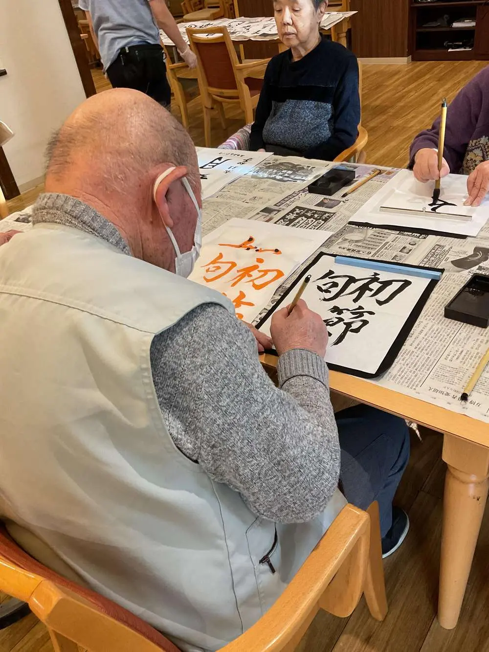 大人気の書道レクでは、冬にまつわる文字を書いていただきました📝