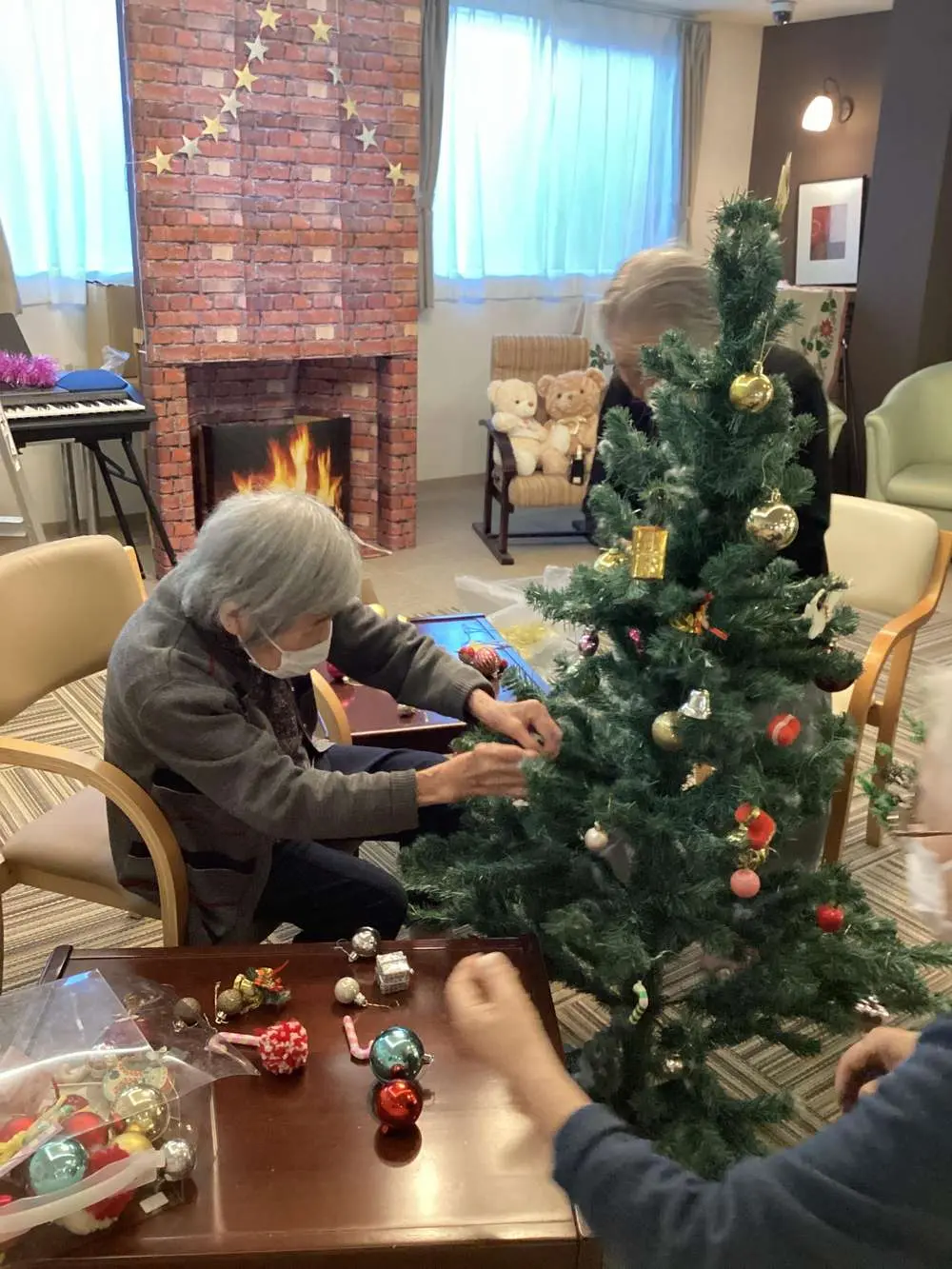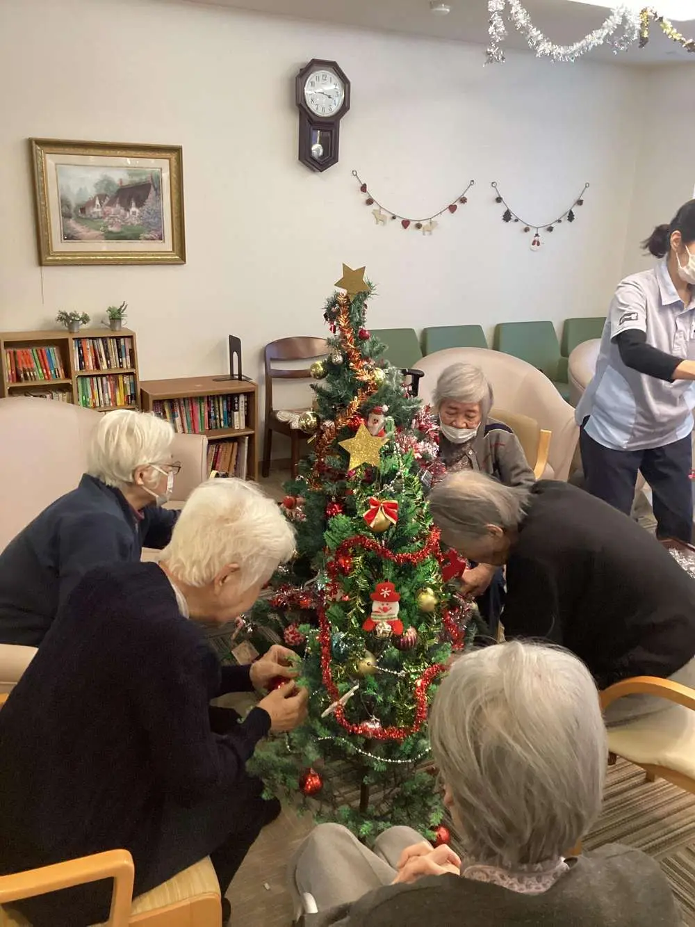 完成したツリーは共有スペースに飾り、施設全体がクリスマスらしい華やかな雰囲気に包まれています🎄
