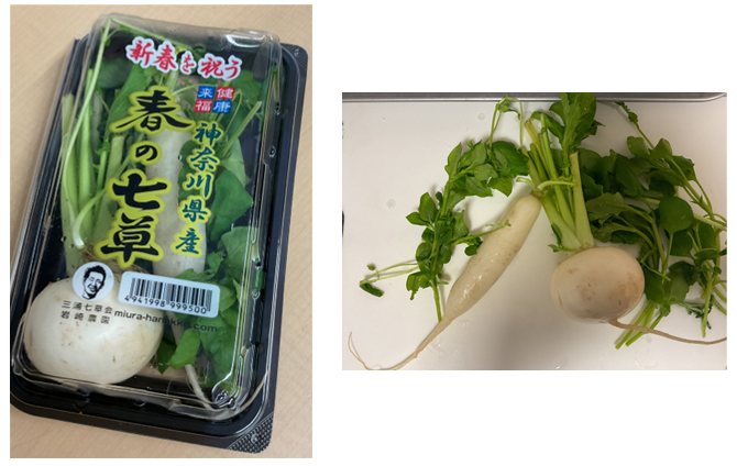 【七草粥】せり、なずな、ごぎょう、はこべら、ほとけのざ、すずな、すずしろを刻んで入れたお粥で、1年間の無病息災を願う行事食。お正月のご馳走で疲れた胃腸を休める意味もあり、邪気を払い、新たな年の活力を得るとされています!
